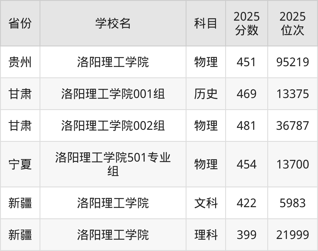 2025年洛阳理工学院在省内,其中历史类最低分是535分、对应位次是35736名;物理类最低分是505分,对应位次是199910名。