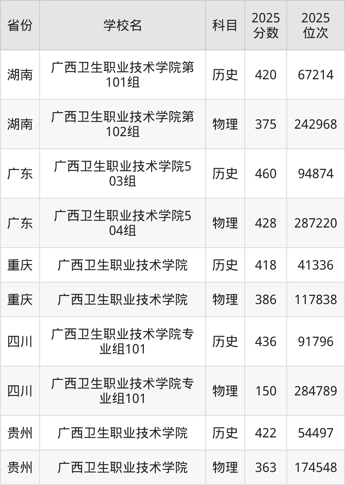 下面是广西卫生职业技术学院2025年录取分数线各省汇总,一起来了解下吧。