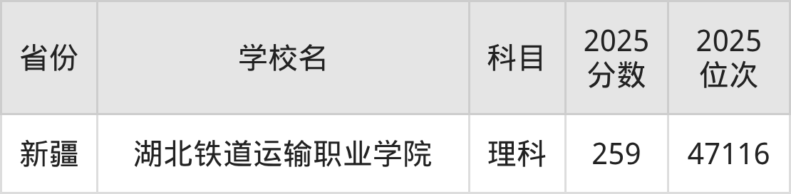 | 学校名 | 科目 | 2025 分数 | 2025 位次 |
