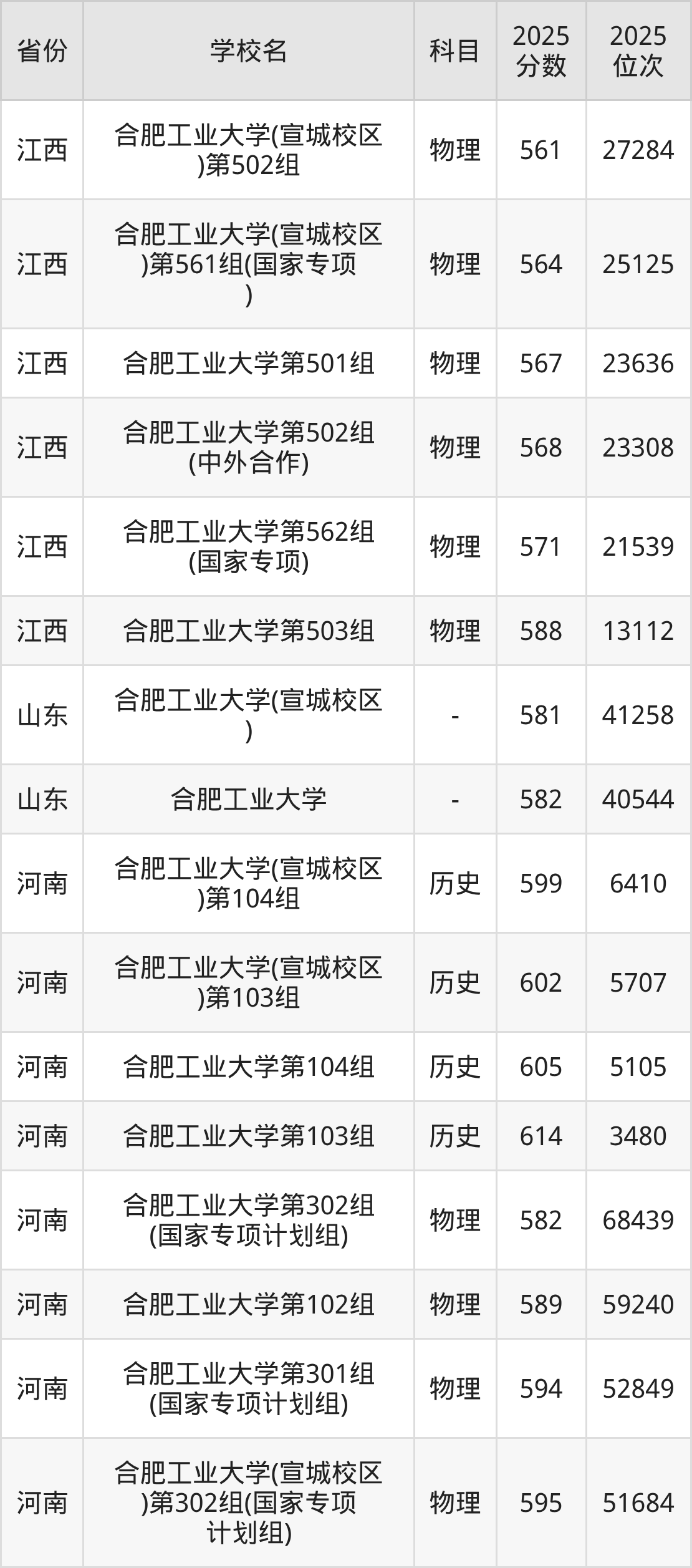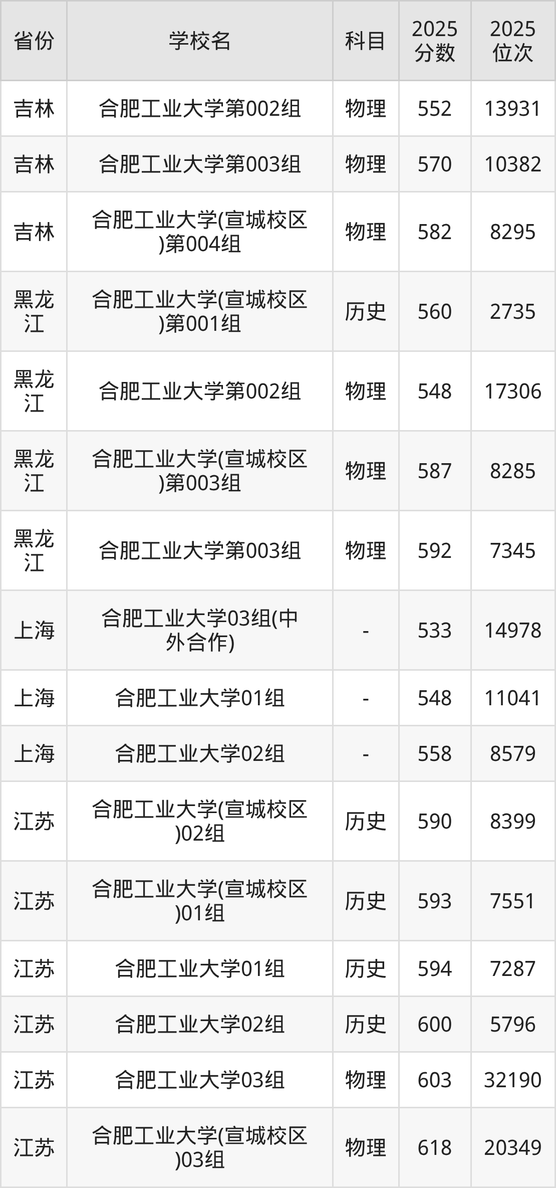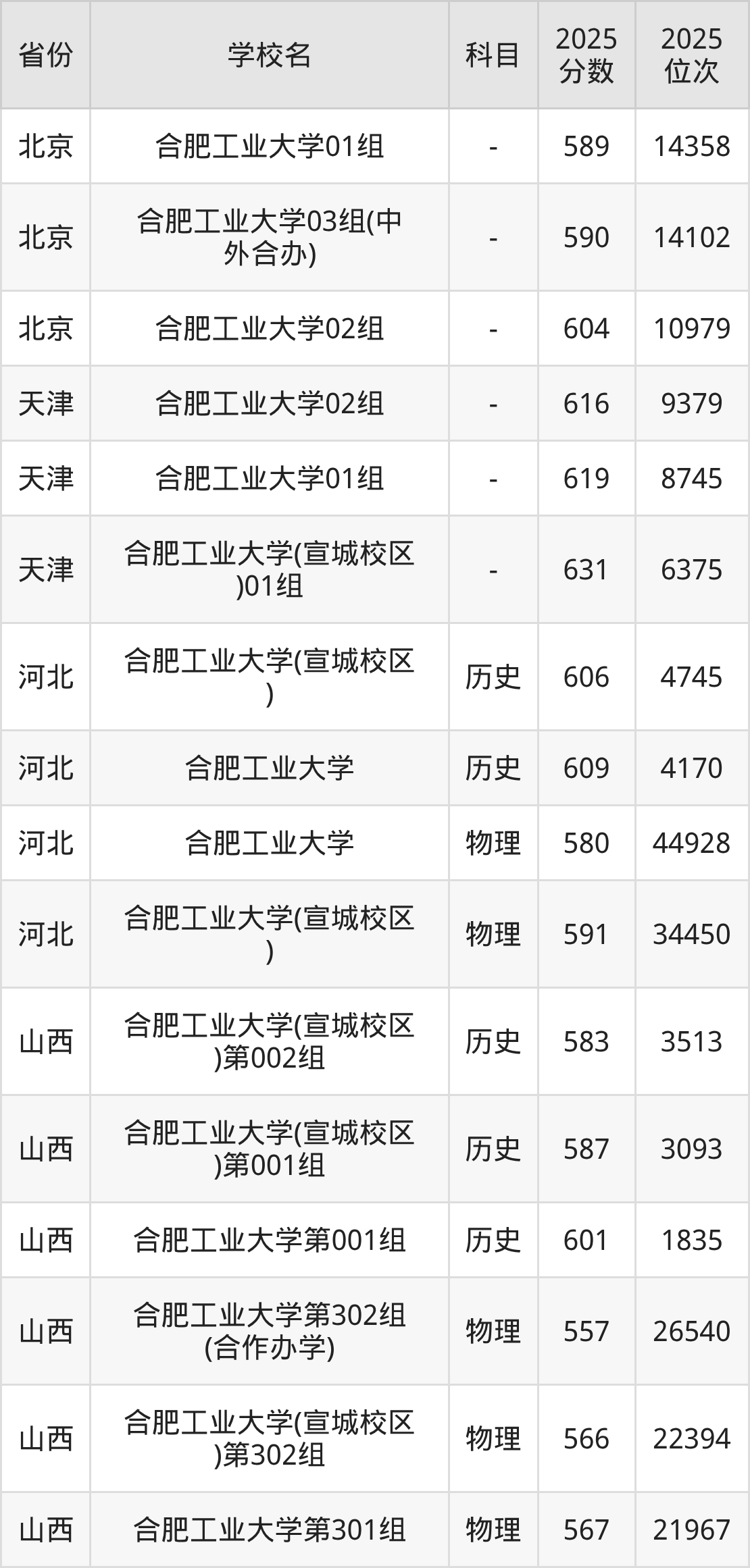 2025年合肥工业大学历史类最低分587分(5225名)、物理类最低分592分(32176名)。