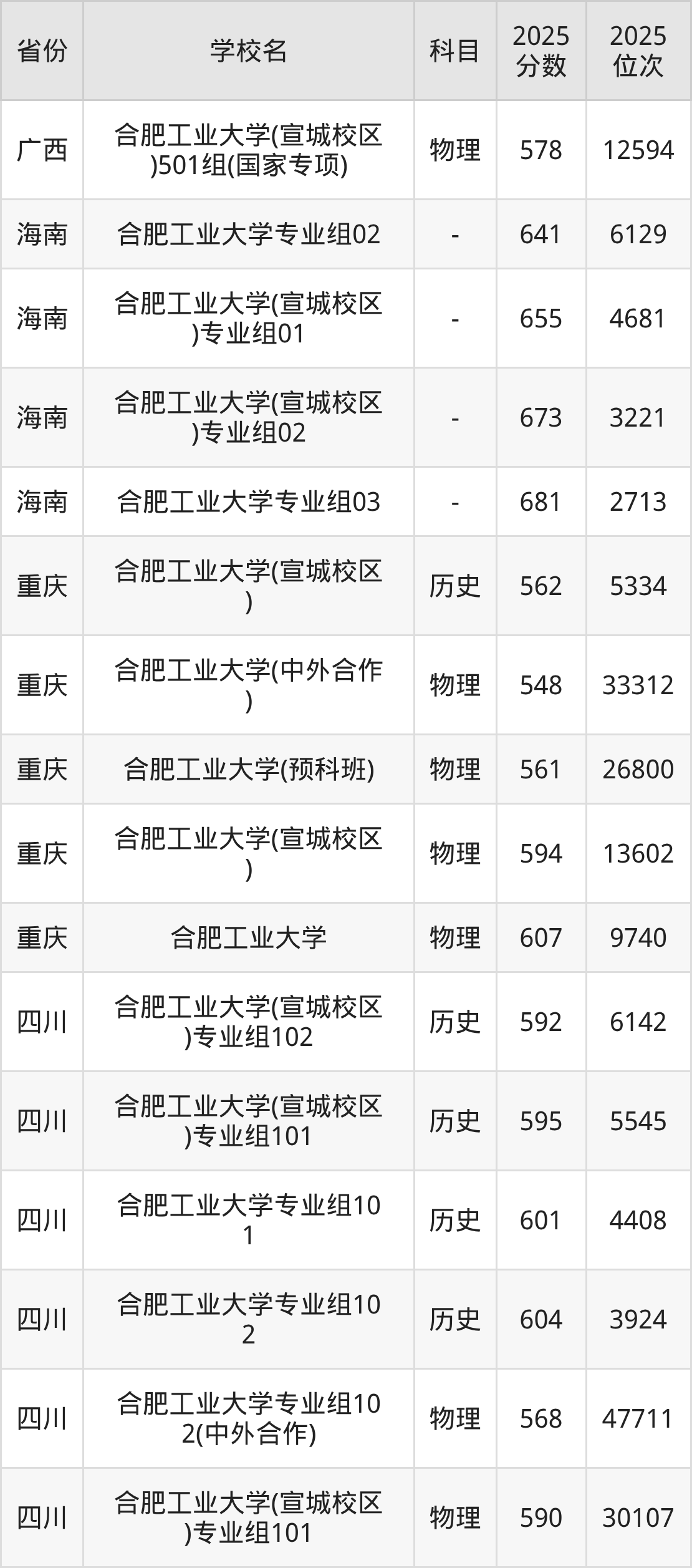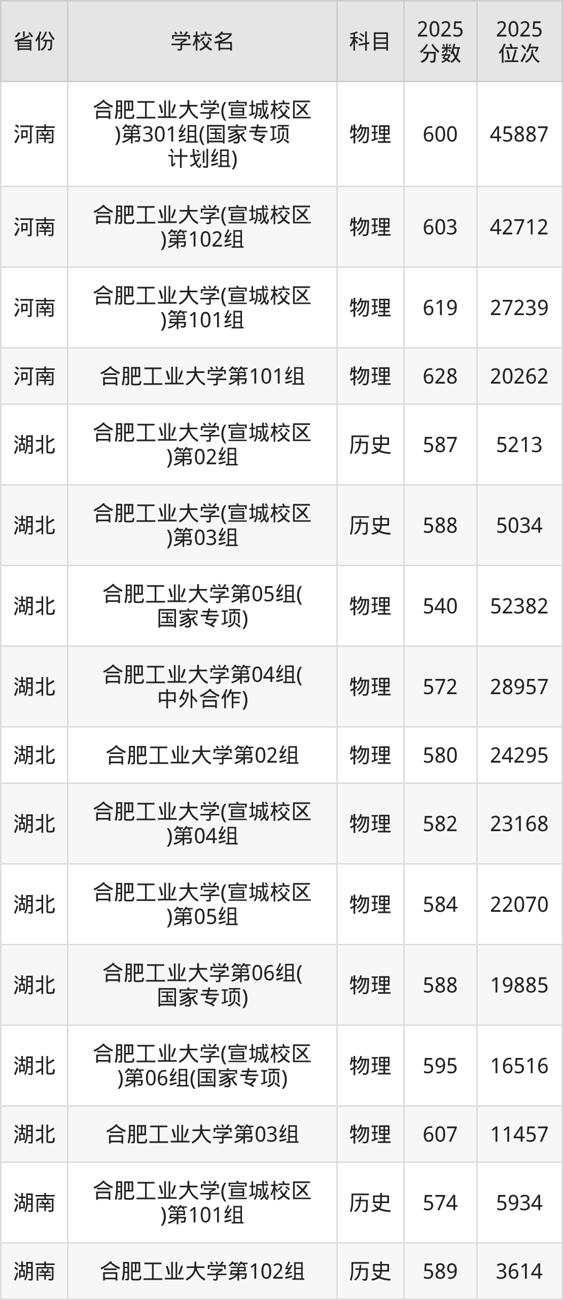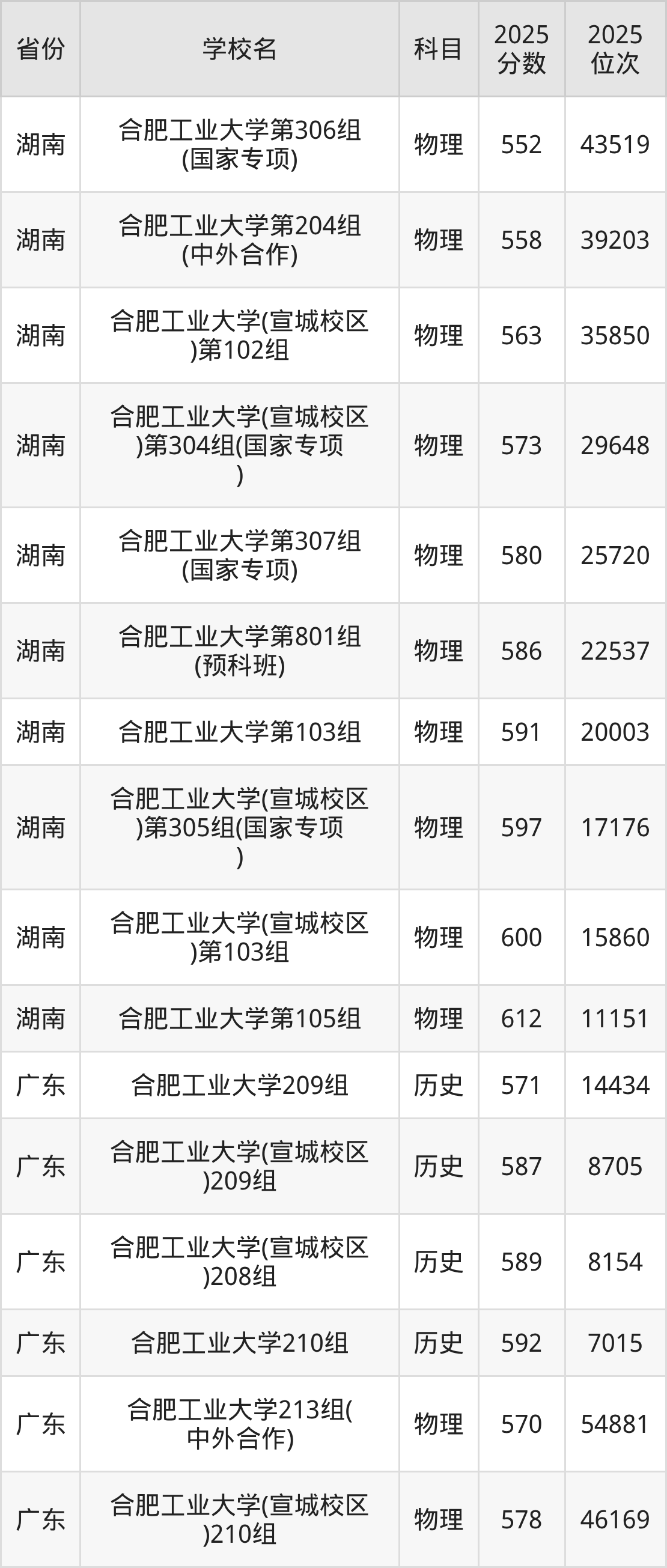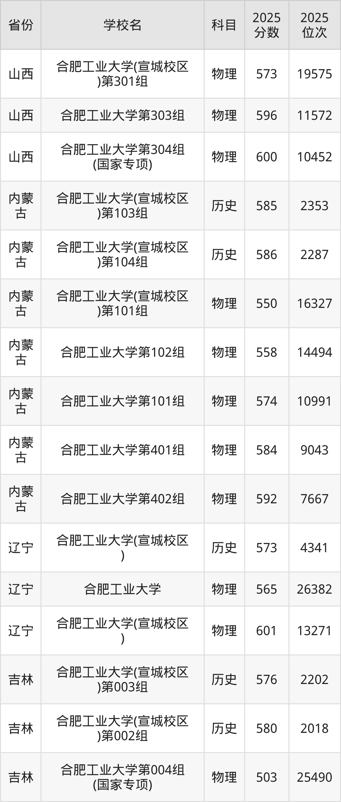 2025年合肥工业大学历史类最低分587分(5225名)、物理类最低分592分(32176名)。