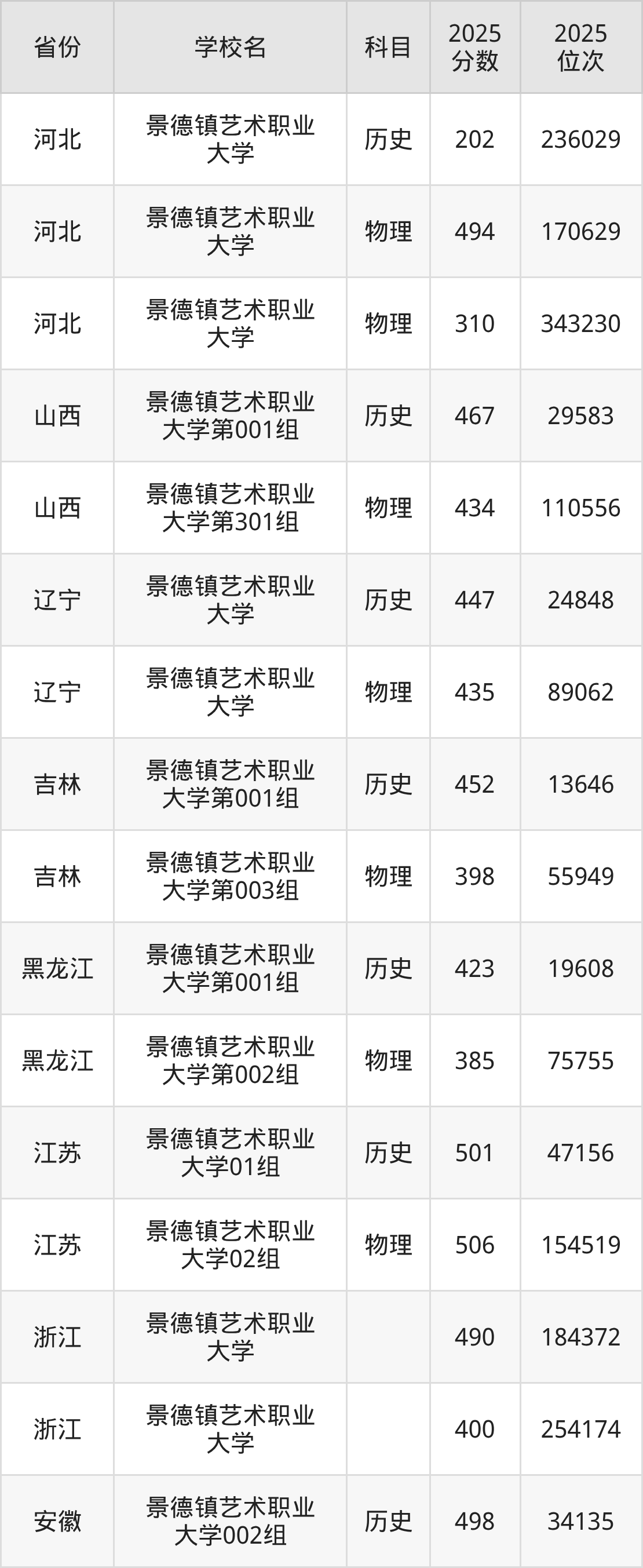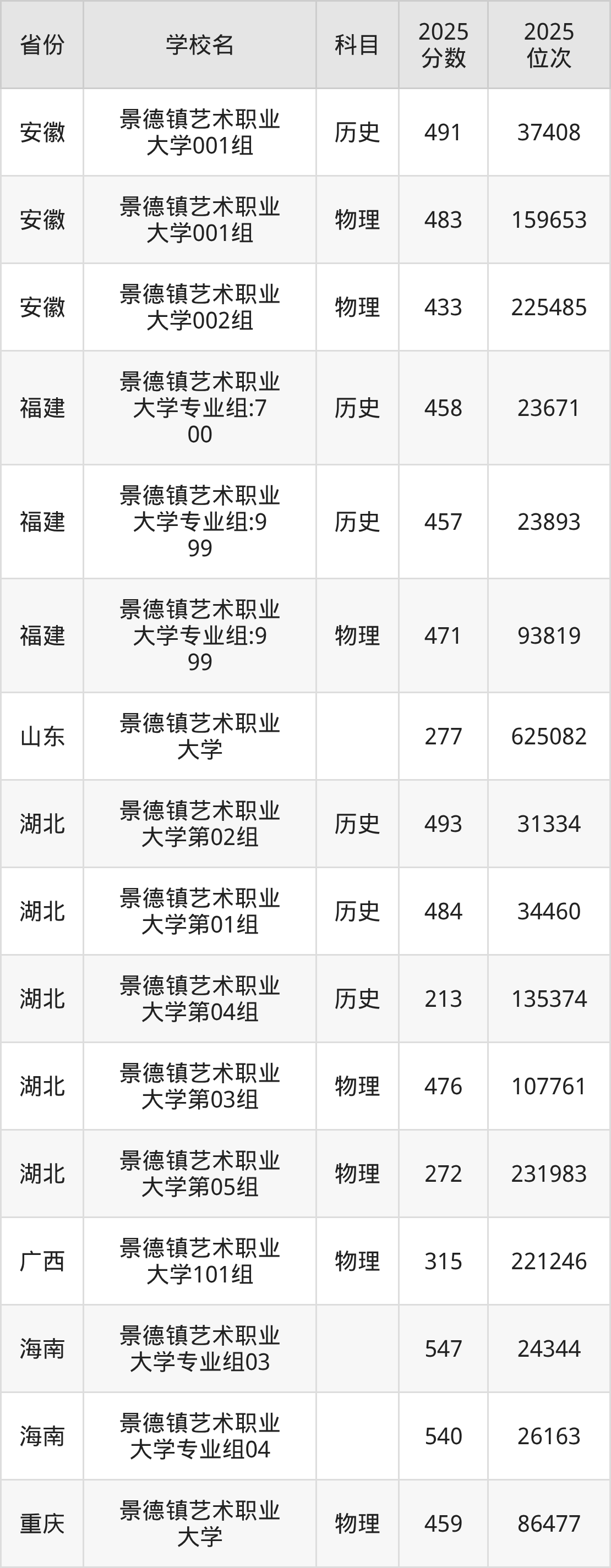 下面是景德镇艺术职业大学2025年录取分数线各省汇总,一起来了解下吧。