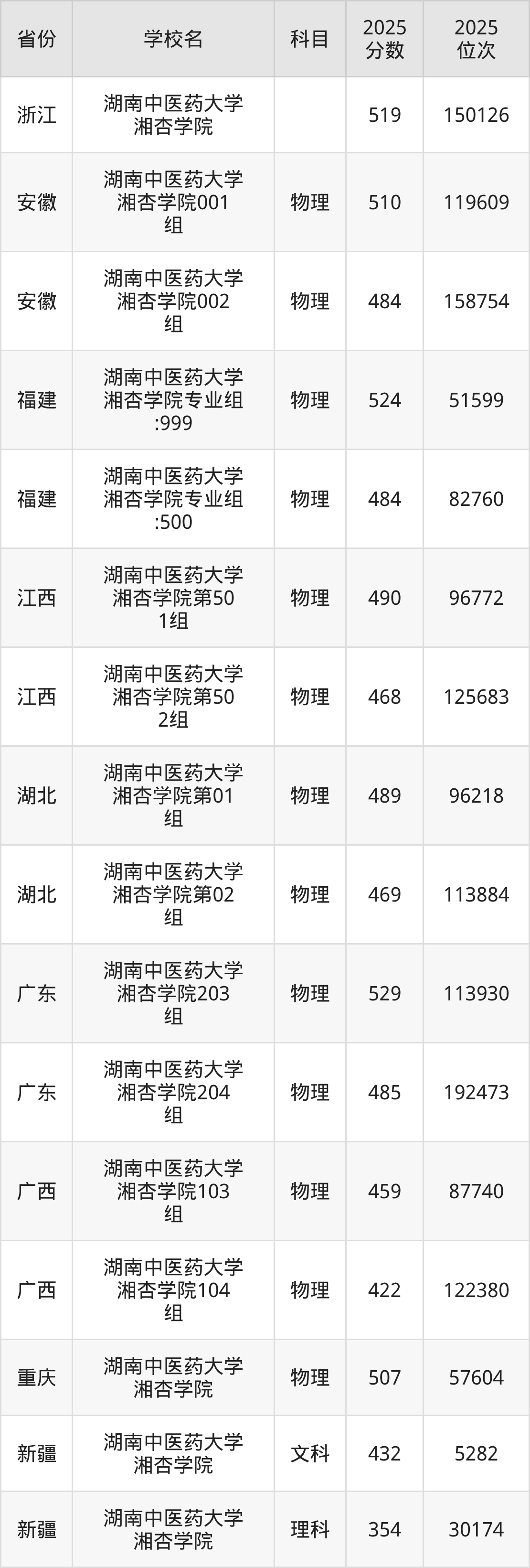 下面是湖南中医药大学湘杏学院2025年录取分数线各省汇总,一起来了解下吧。