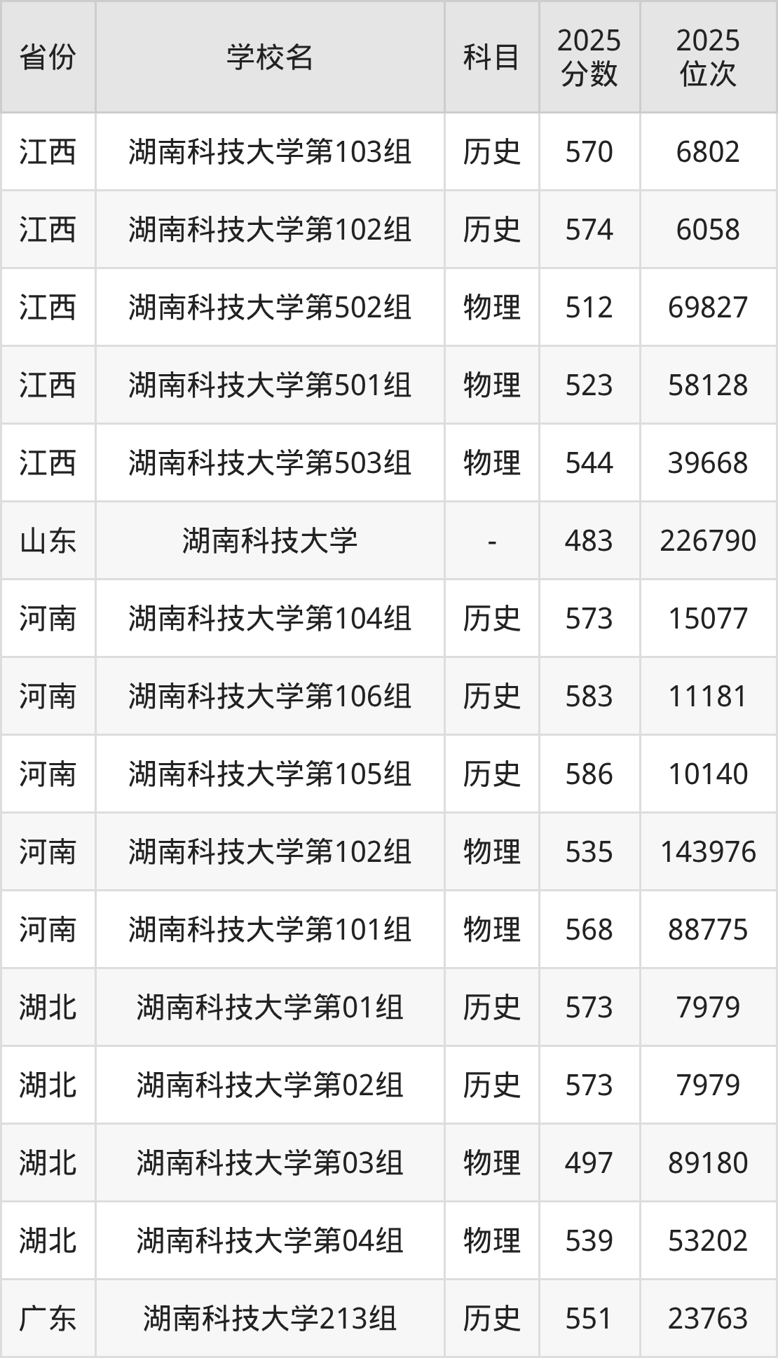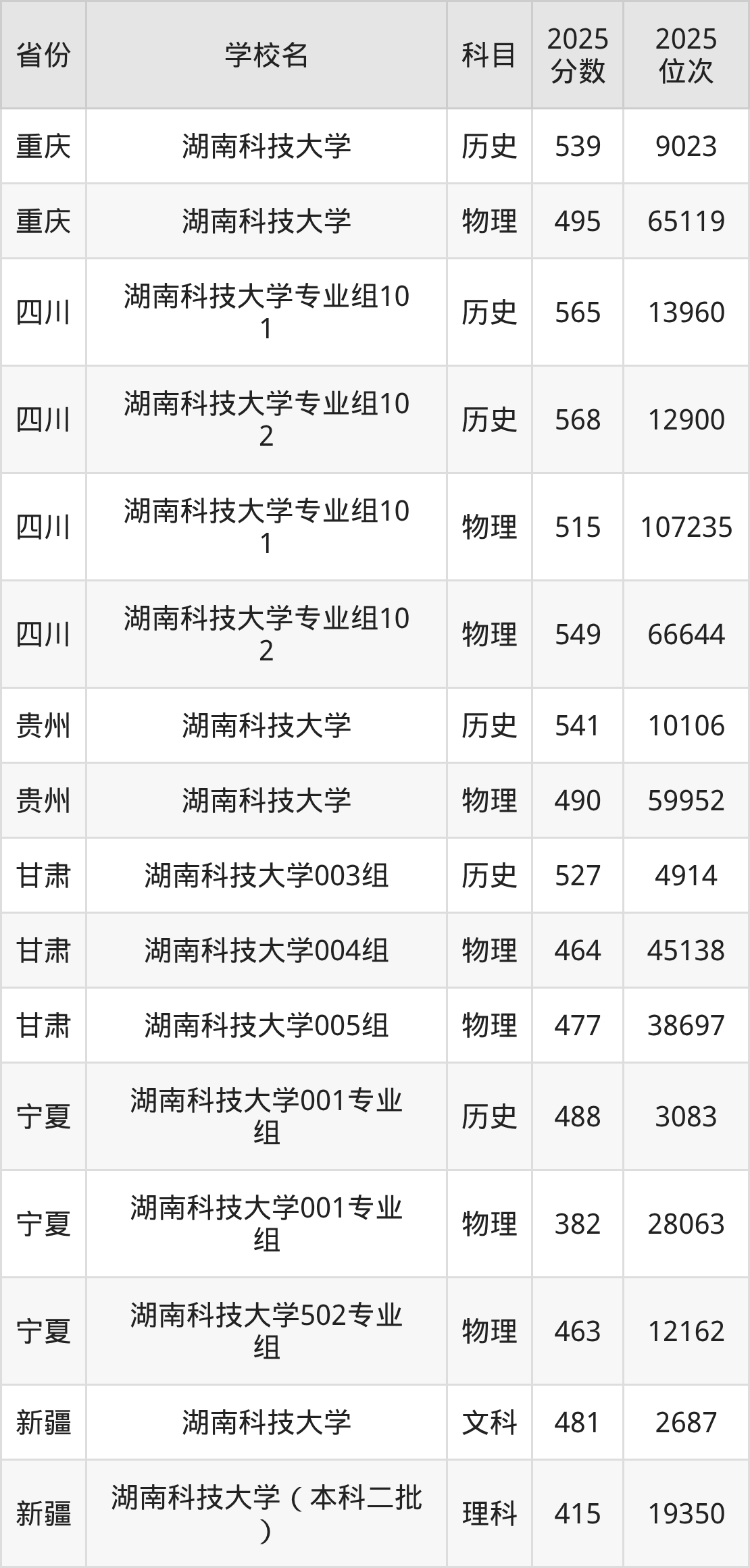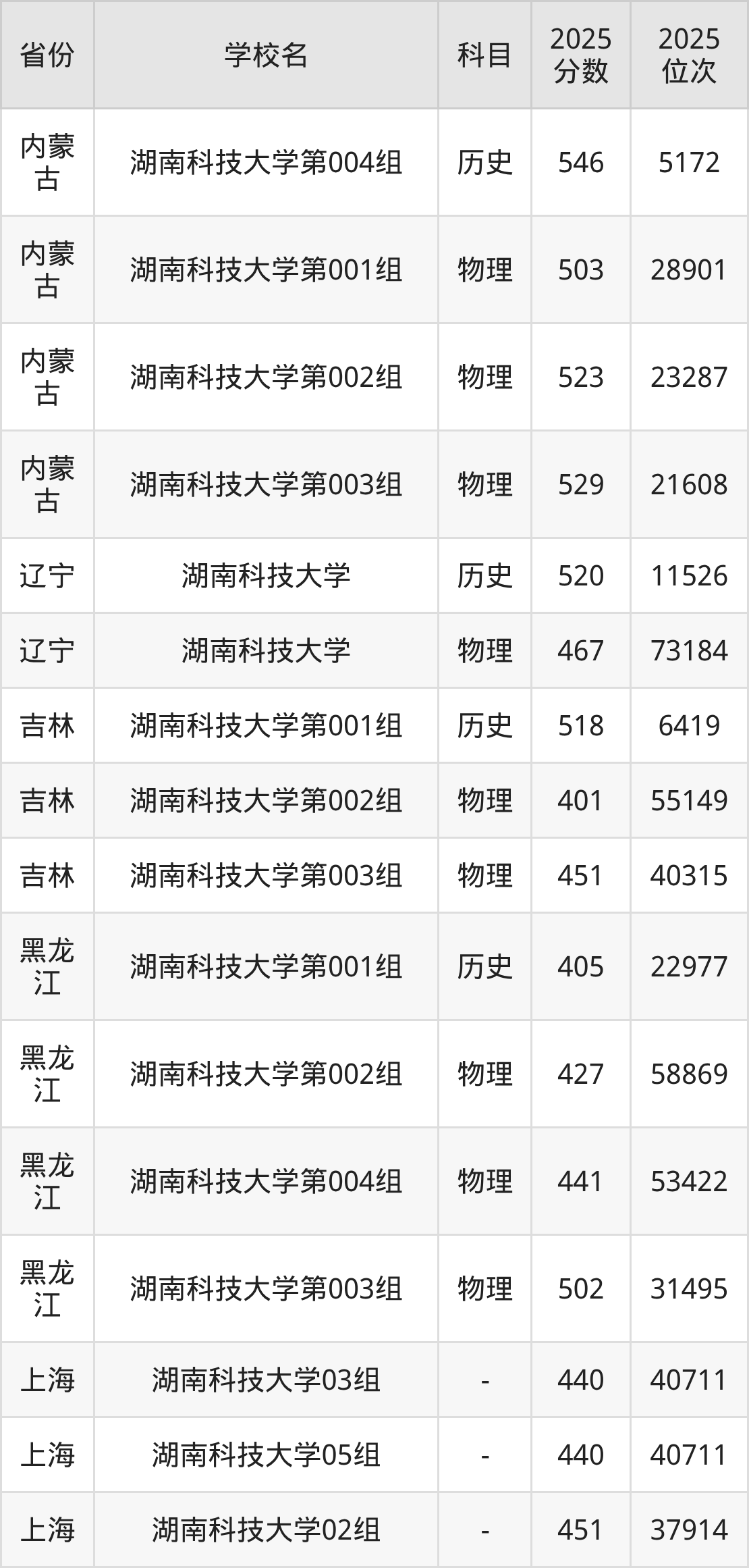 2025年湖南科技大学历史类最低分537分(14238名)、物理类最低分484分(109438名)。