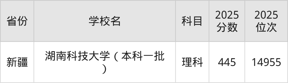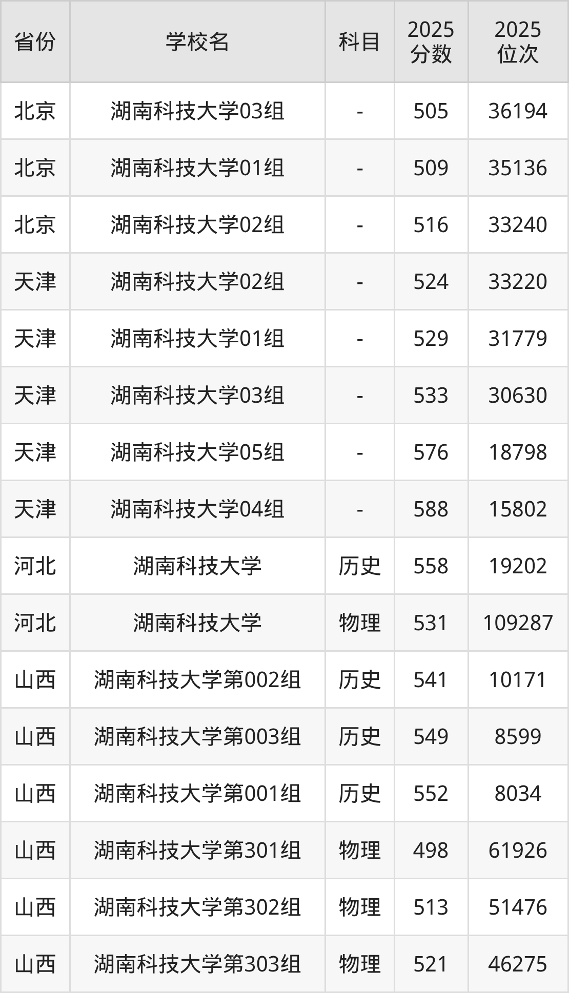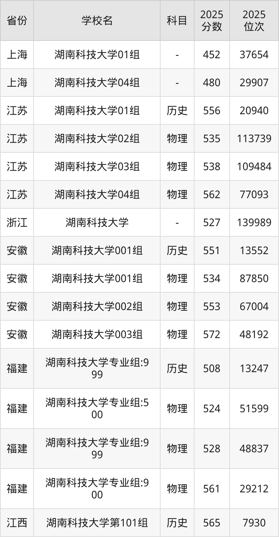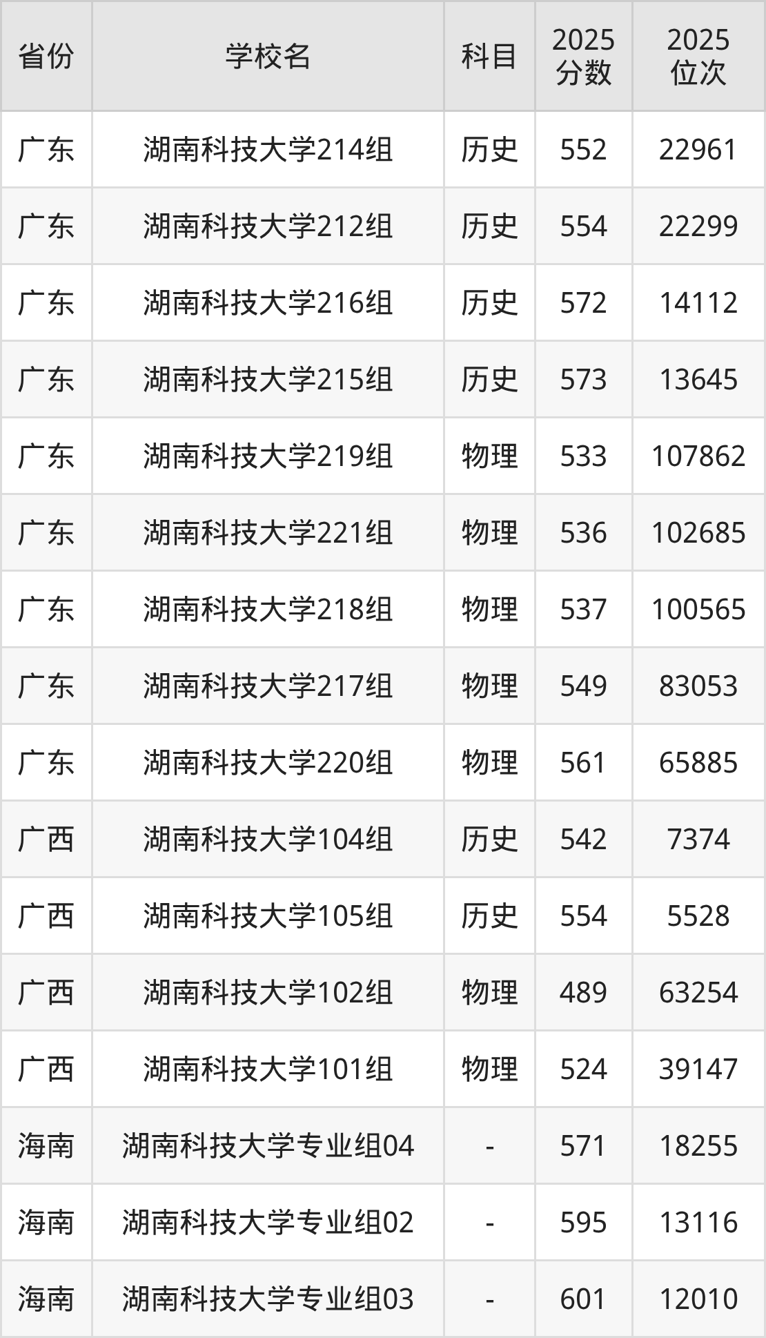 2025年湖南科技大学历史类最低分537分(14238名)、物理类最低分484分(109438名)。