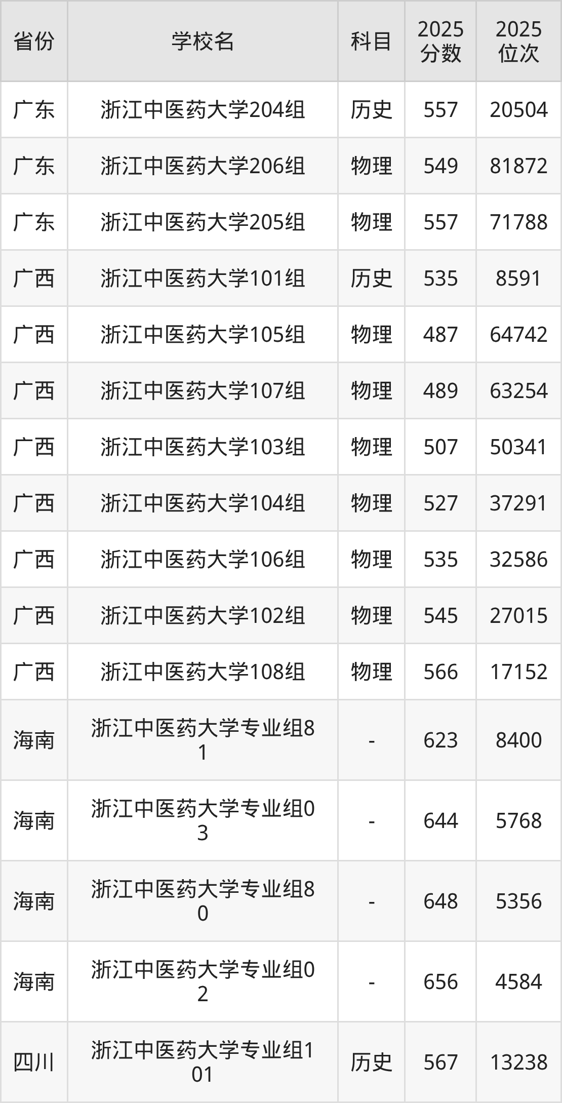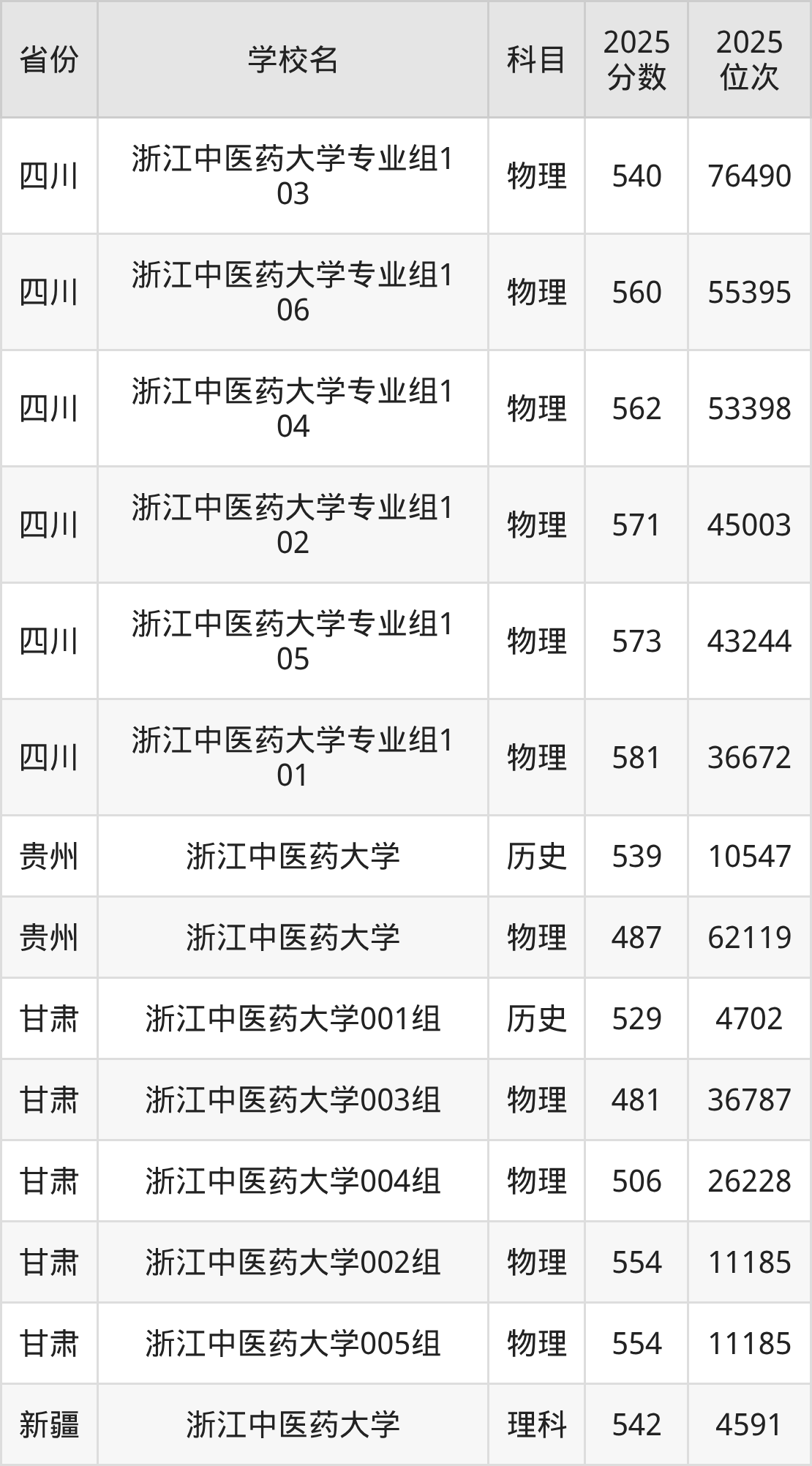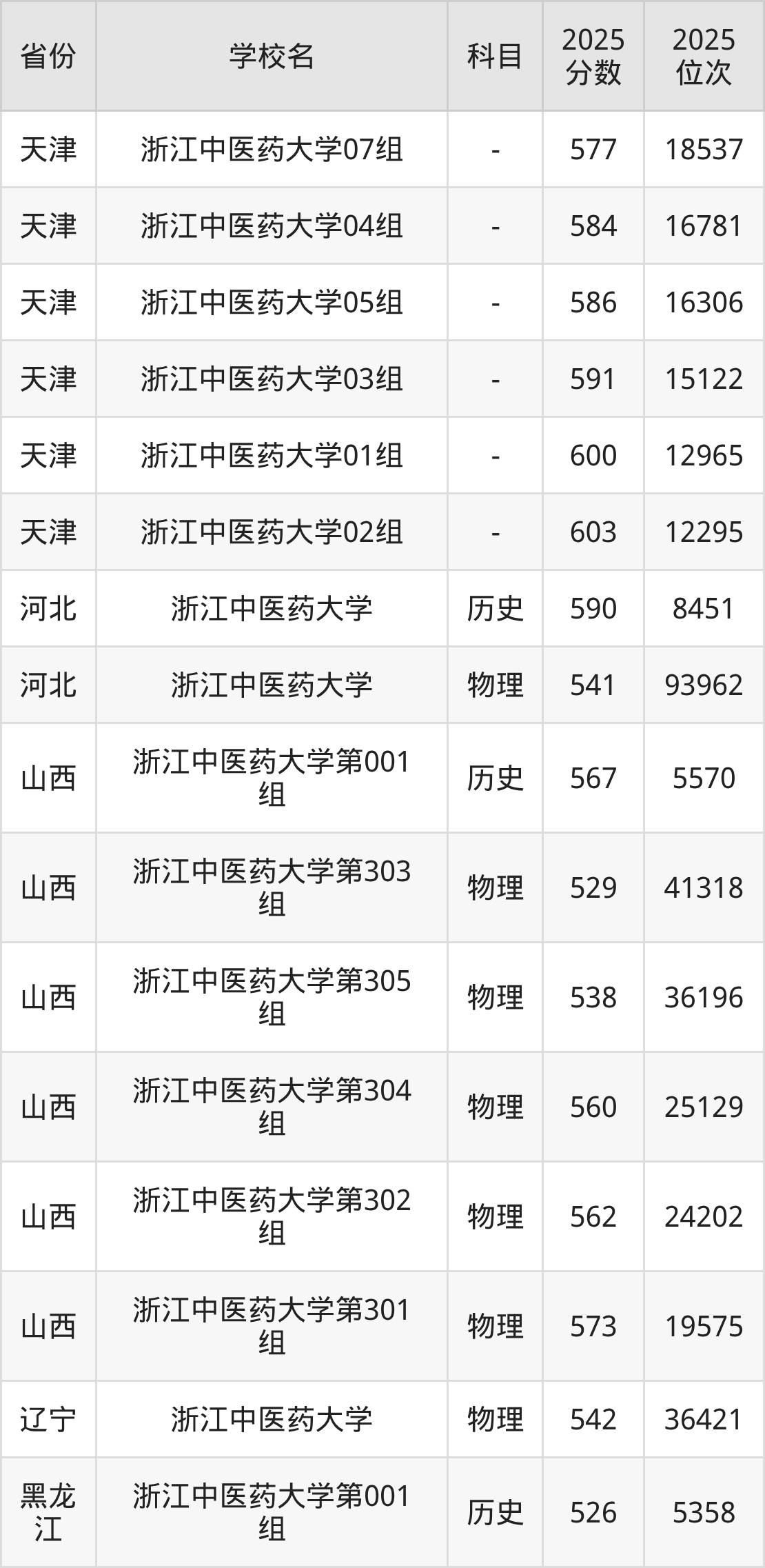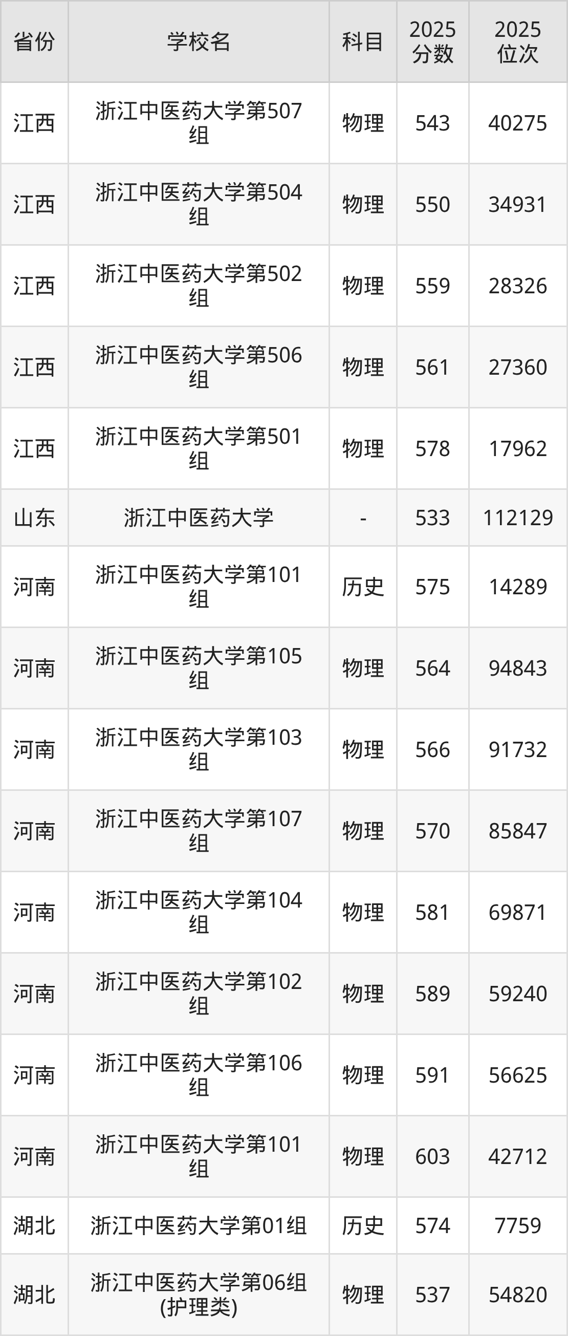 下面是浙江中医药大学2025年录取分数线各省汇总,一起来了解下吧。