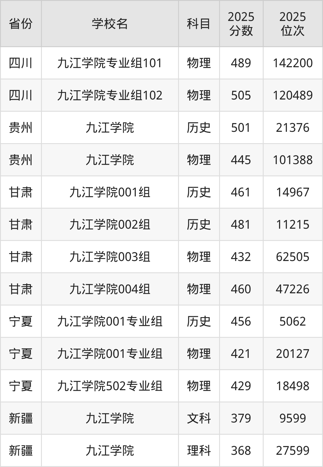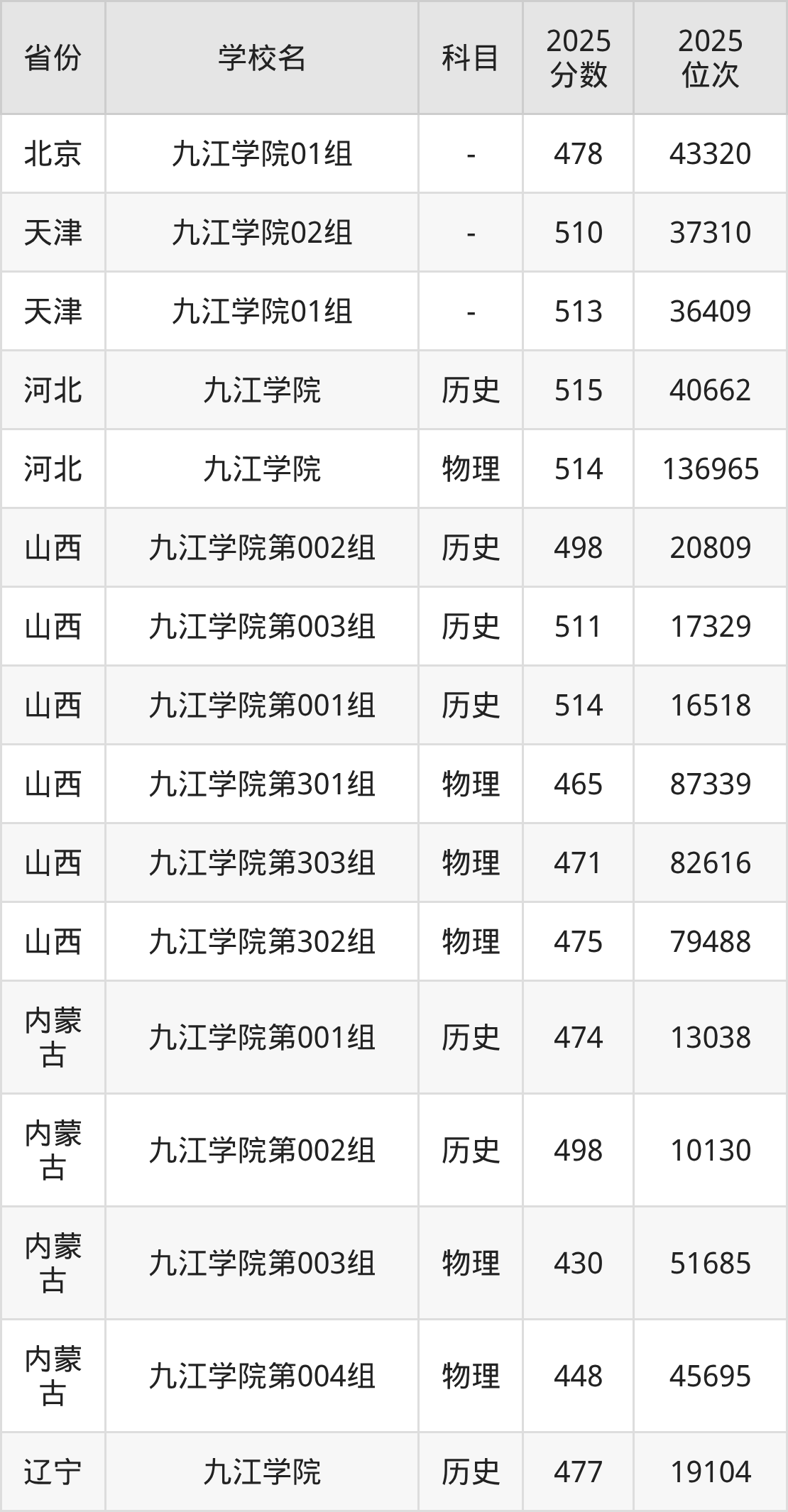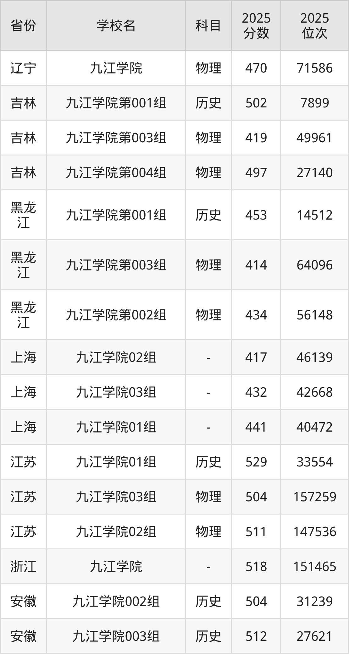 2025年九江学院历史类最低分511分(30822名)、物理类最低分443分(155943名)。