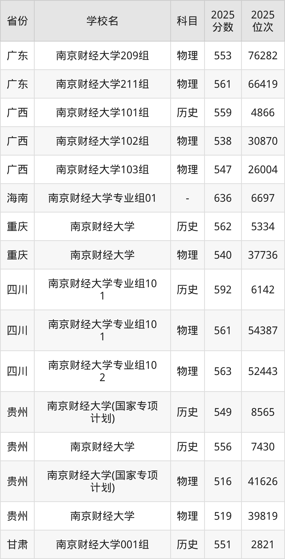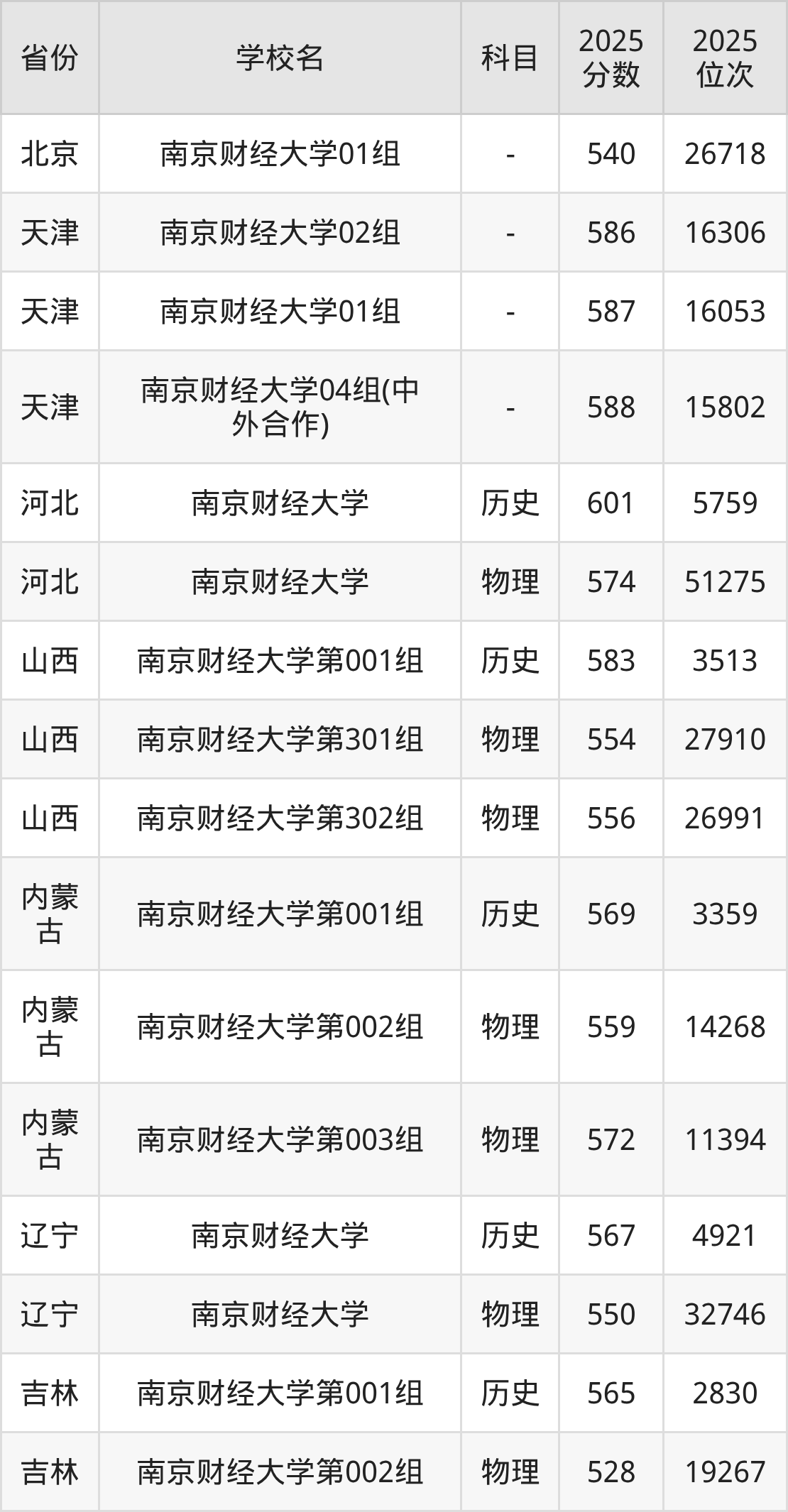 | 南京财经大学0 6组(中外合作 ) | 历史 | 557 | 20493 |