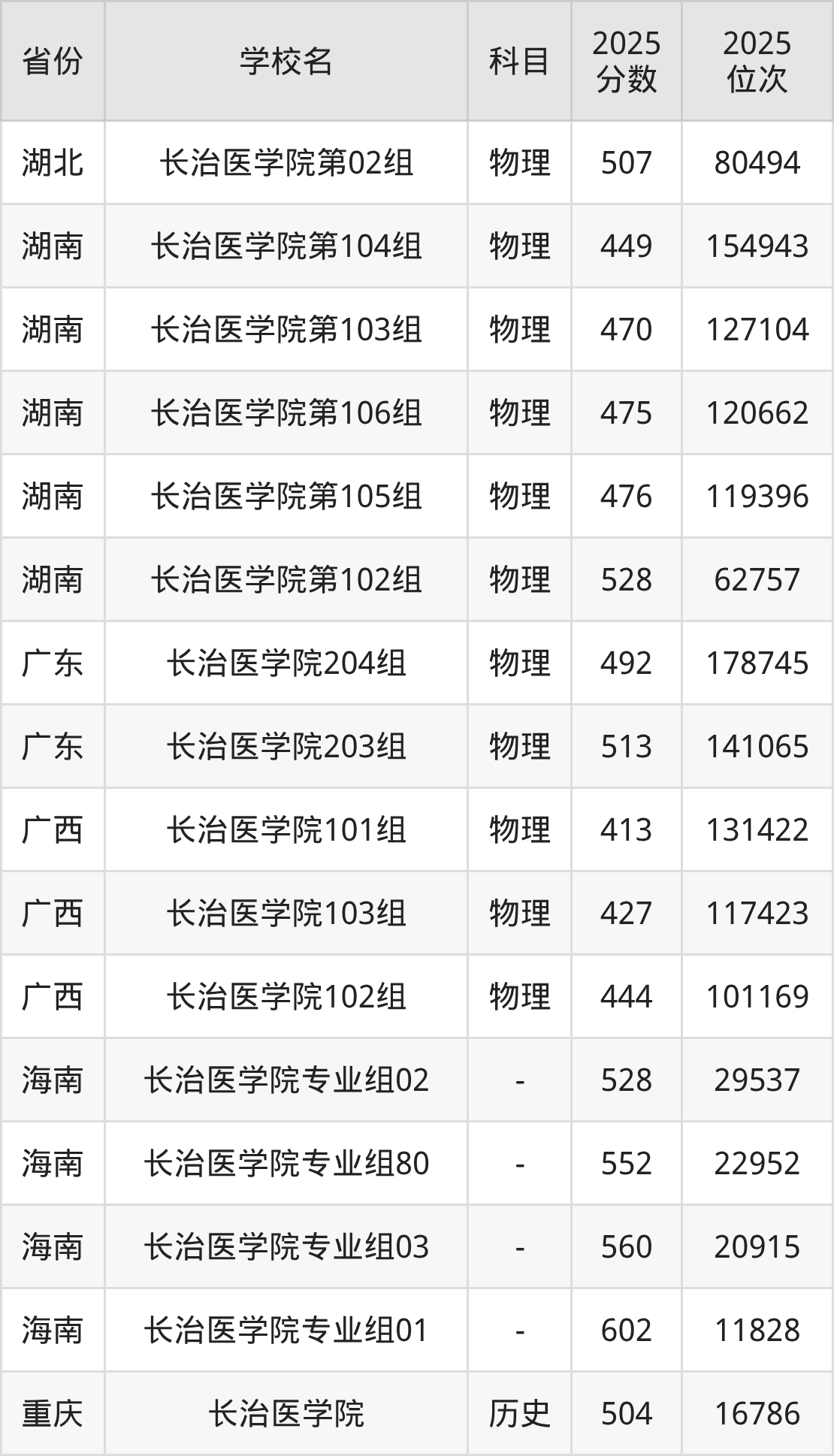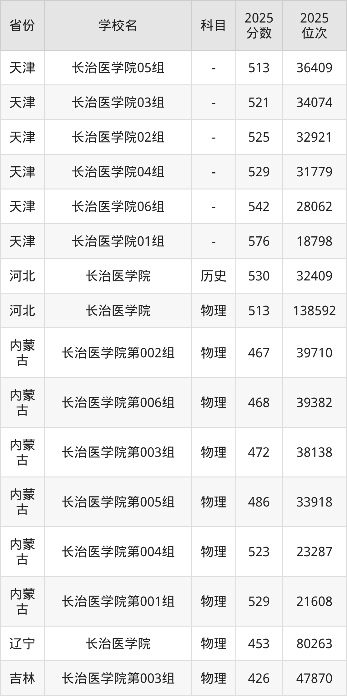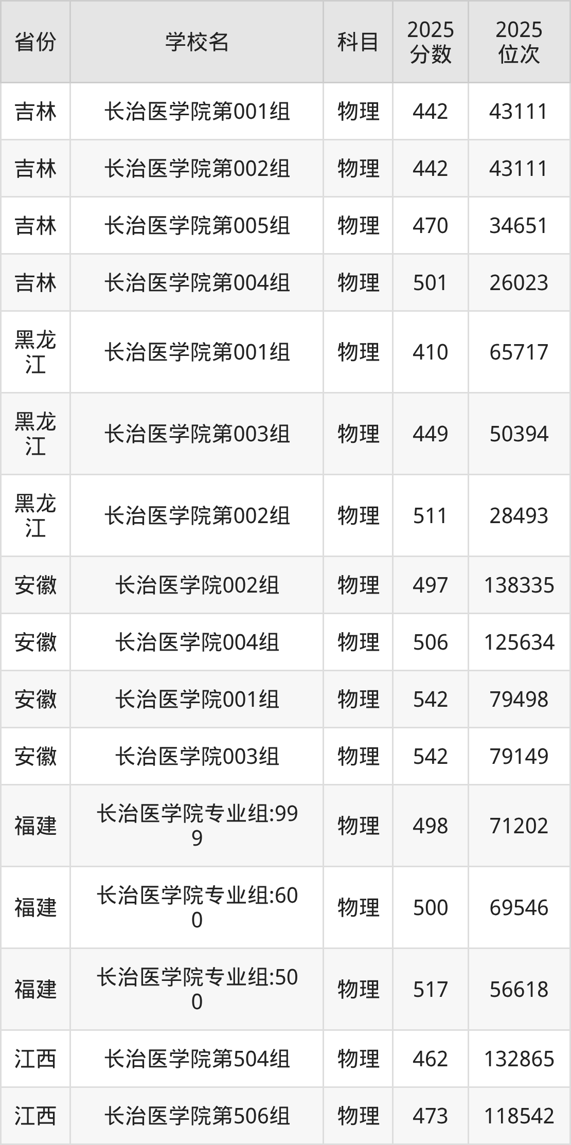 | 长治医学院第3 10组(国家专 项) | 物理 | 531 | 40170 |