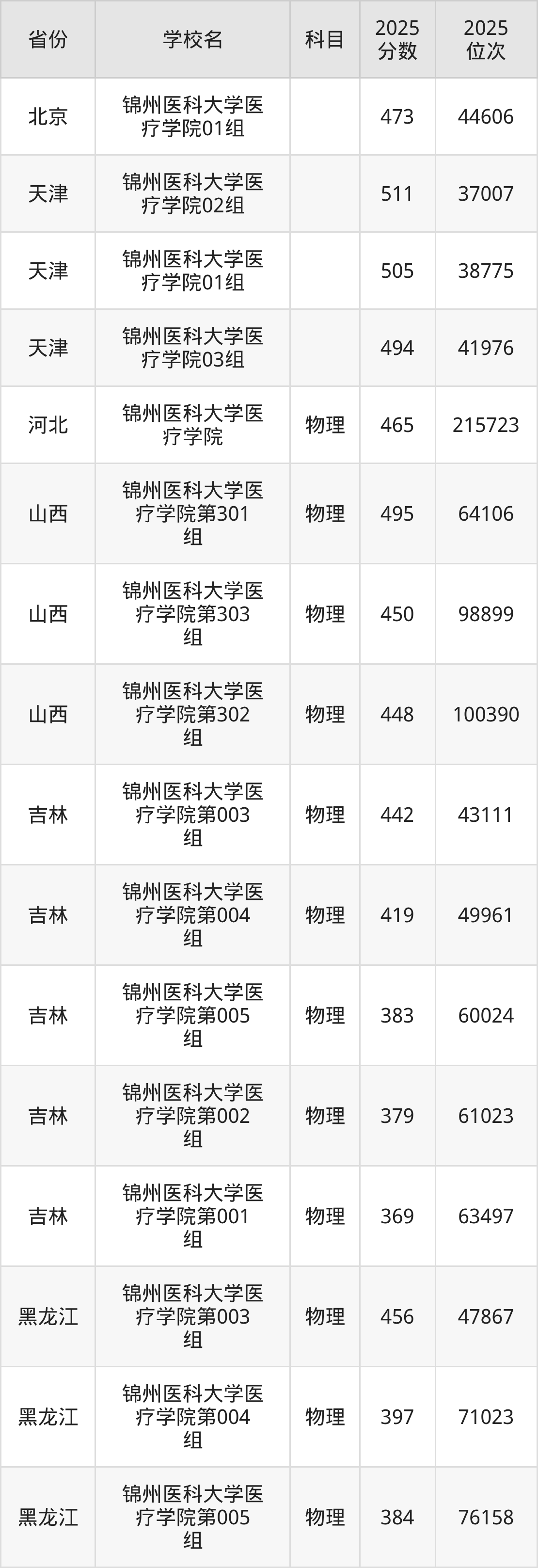 2025年锦州医科大学医疗学院在省内分历史物理科目类录取,其中历史类最低分是437分、对应位次是26916名;物理类最低分是391分,对应位次是108833名。