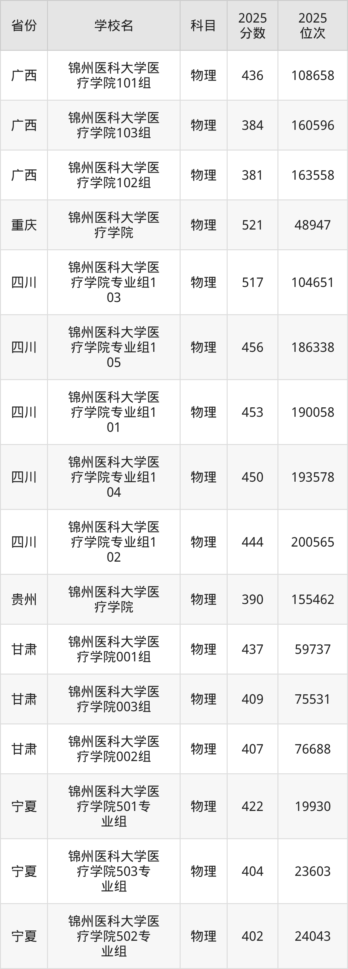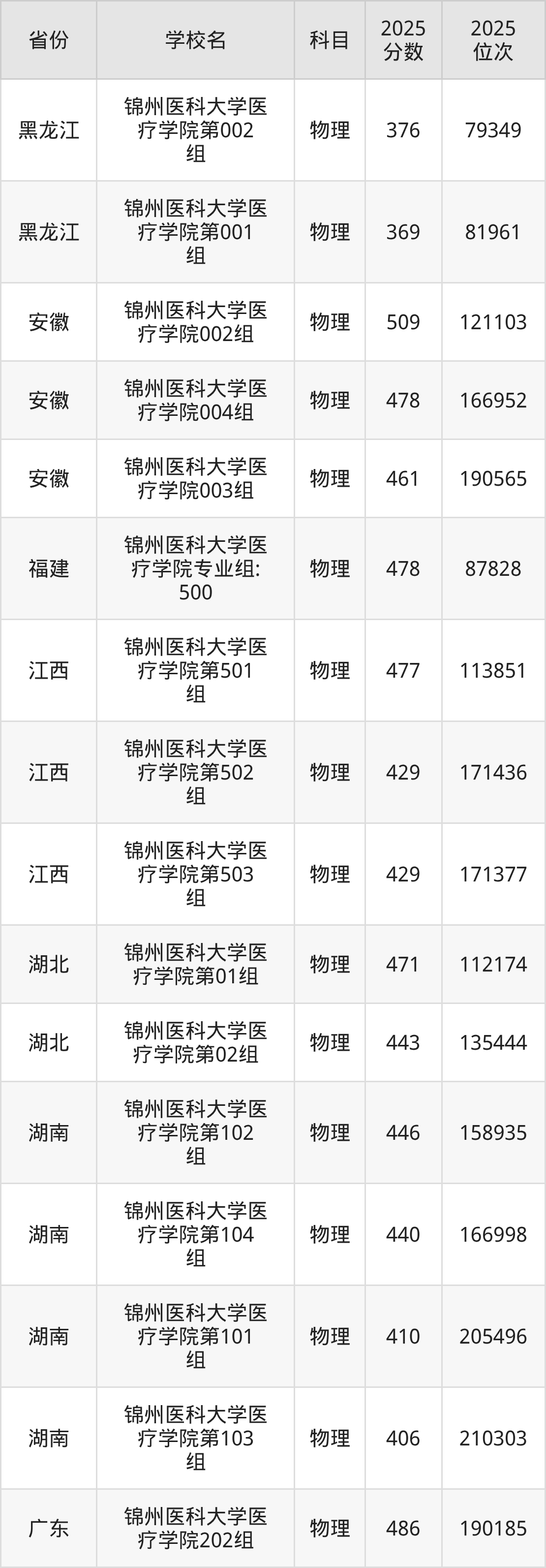 | 锦州医科大学医 疗学院 | 物理 | 391 | 108833 |