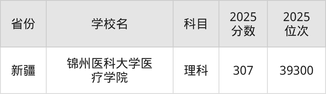 | 学校名 | 科目 | 2025 分数 | 2025 位次 |