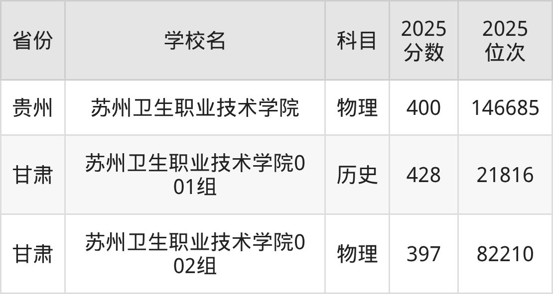下面是苏州卫生职业技术学院2025年录取分数线各省汇总,一起来了解下吧。