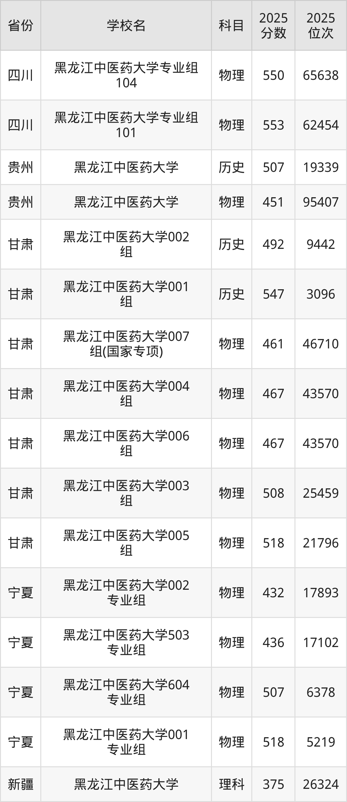 下面是黑龙江中医药大学2025年录取分数线各省汇总,一起来了解下吧。