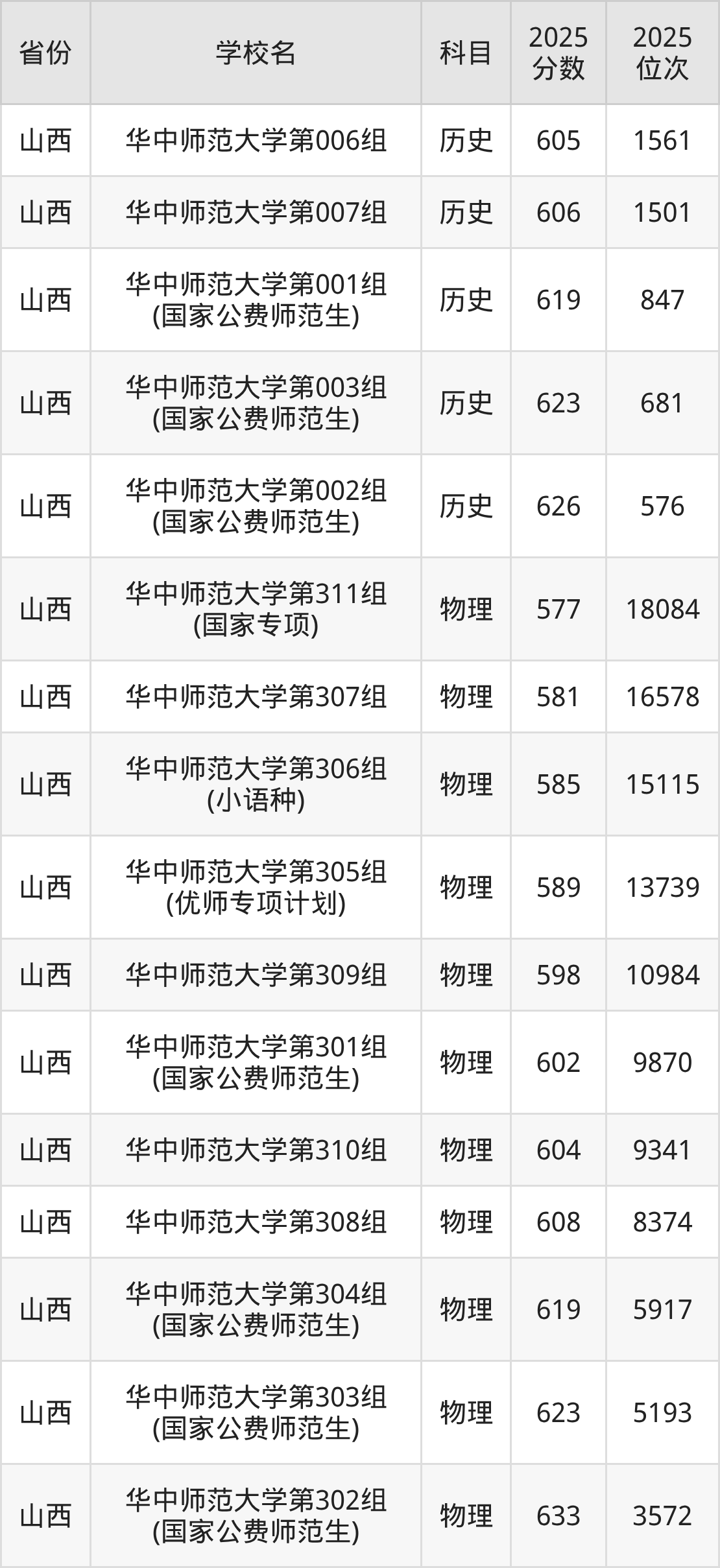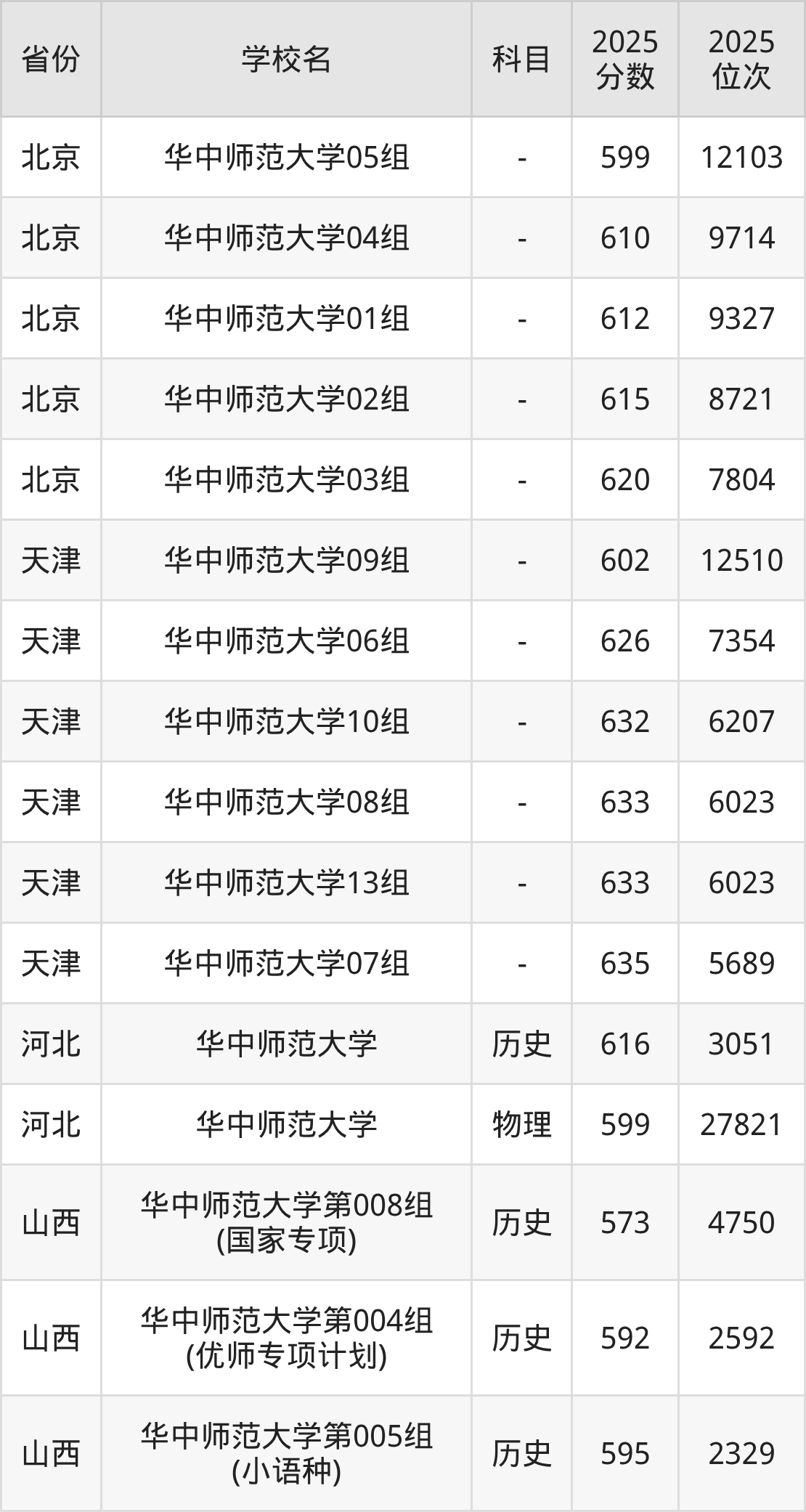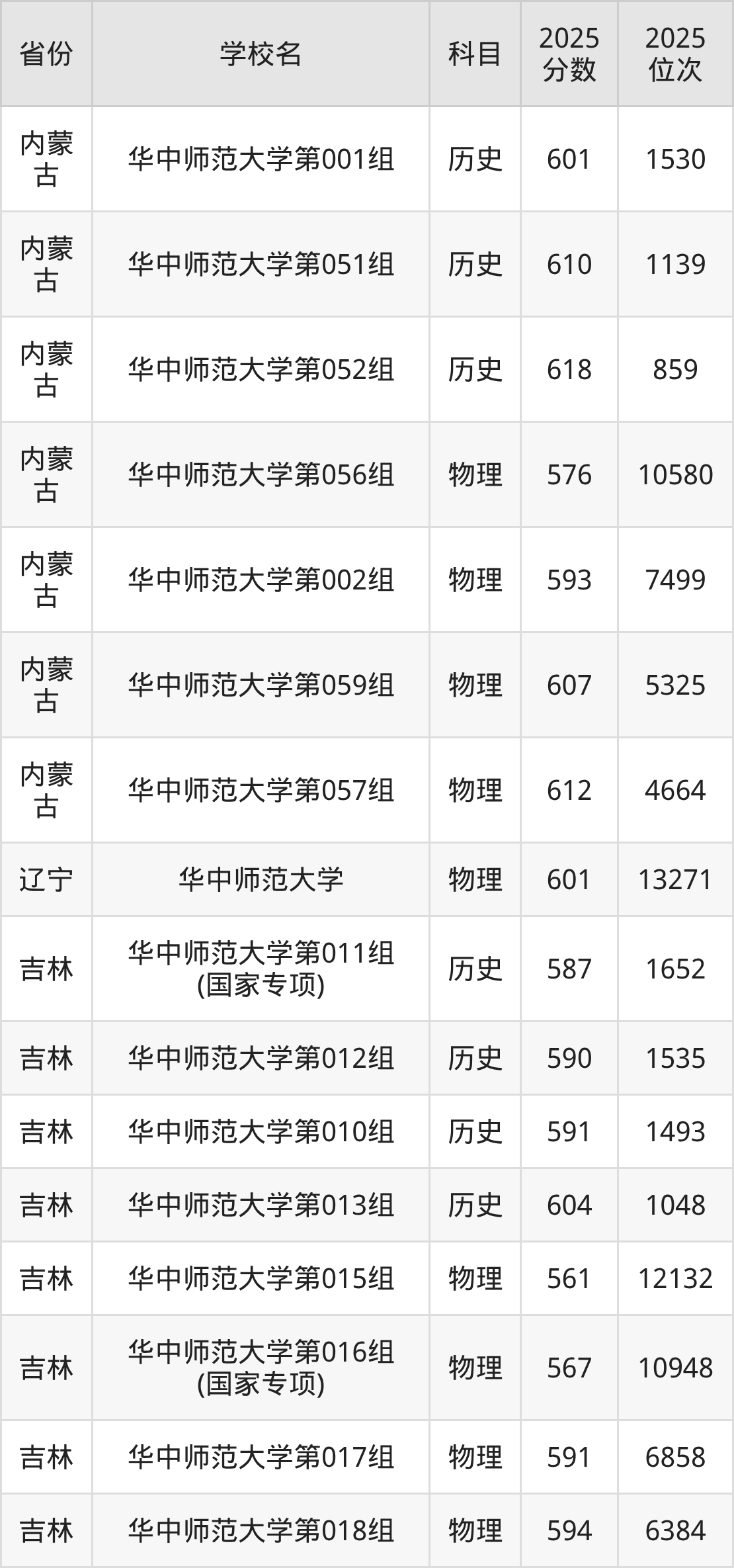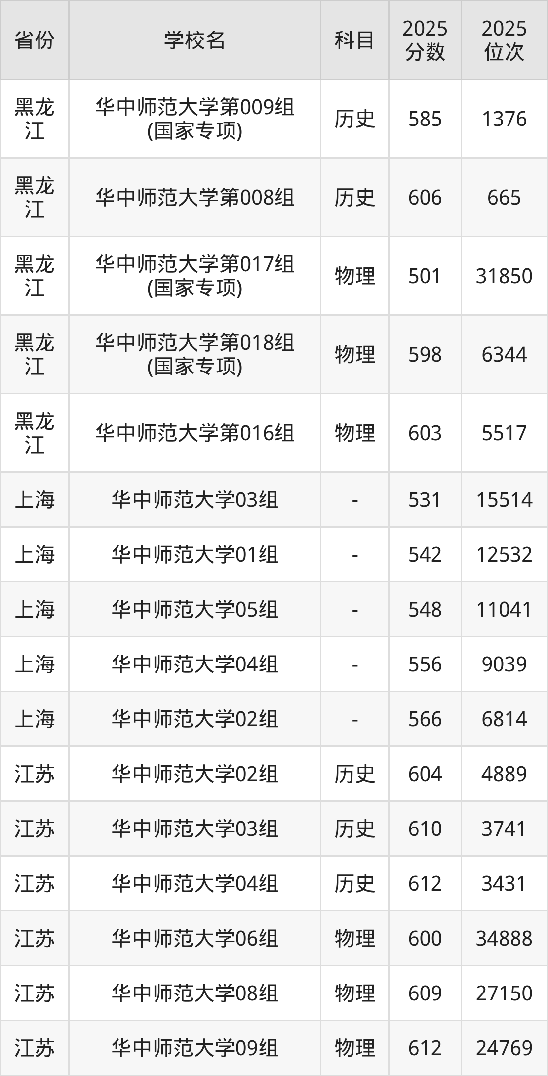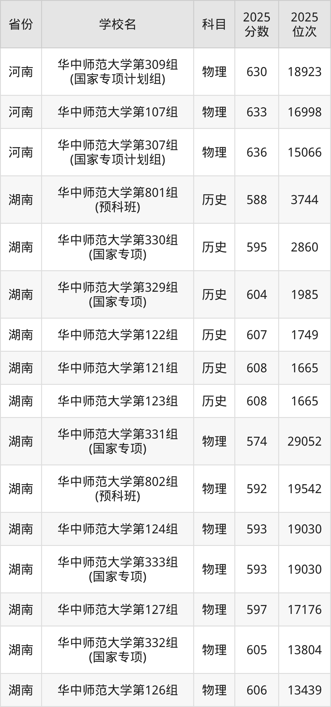 | 华中师范大学第 16组(国家专 项) | 历史 | 600 | 3166 |