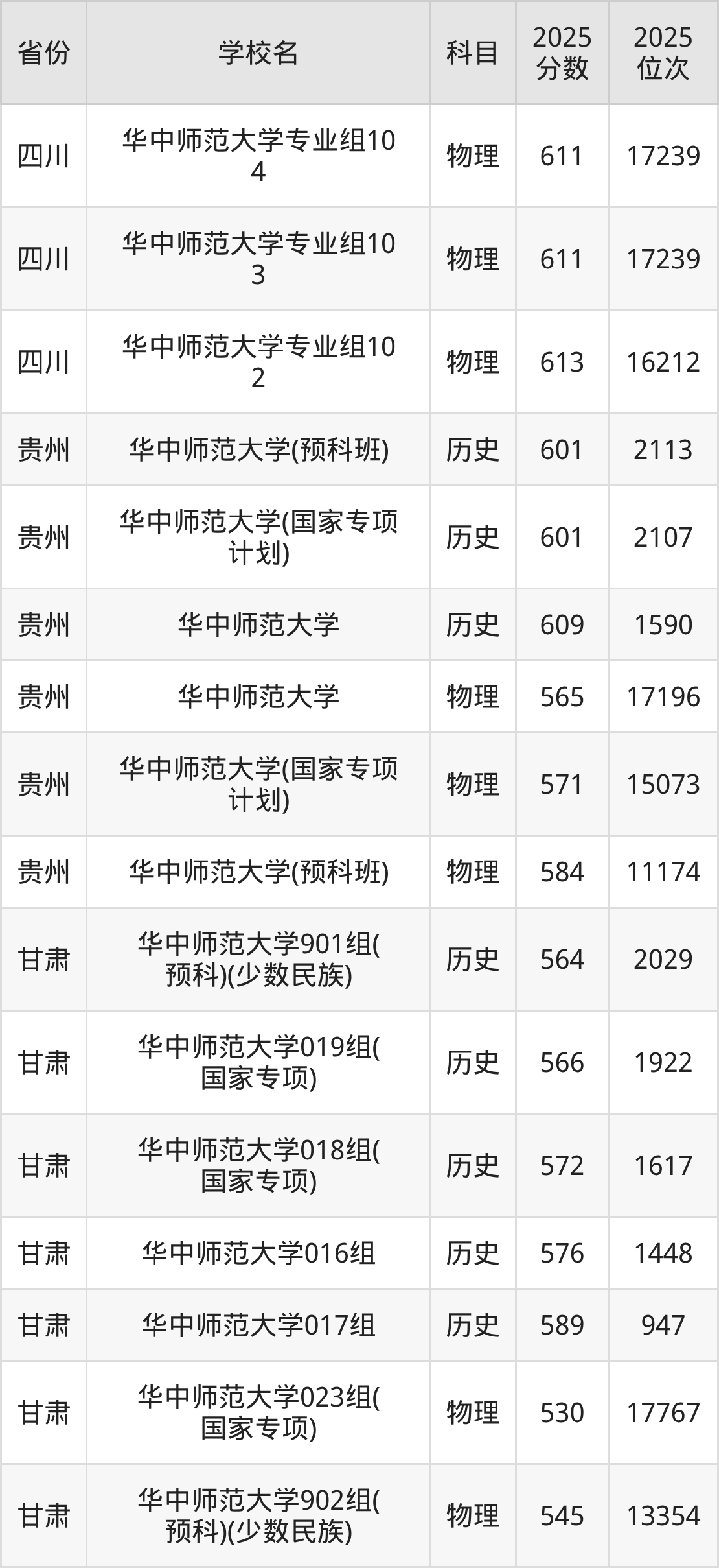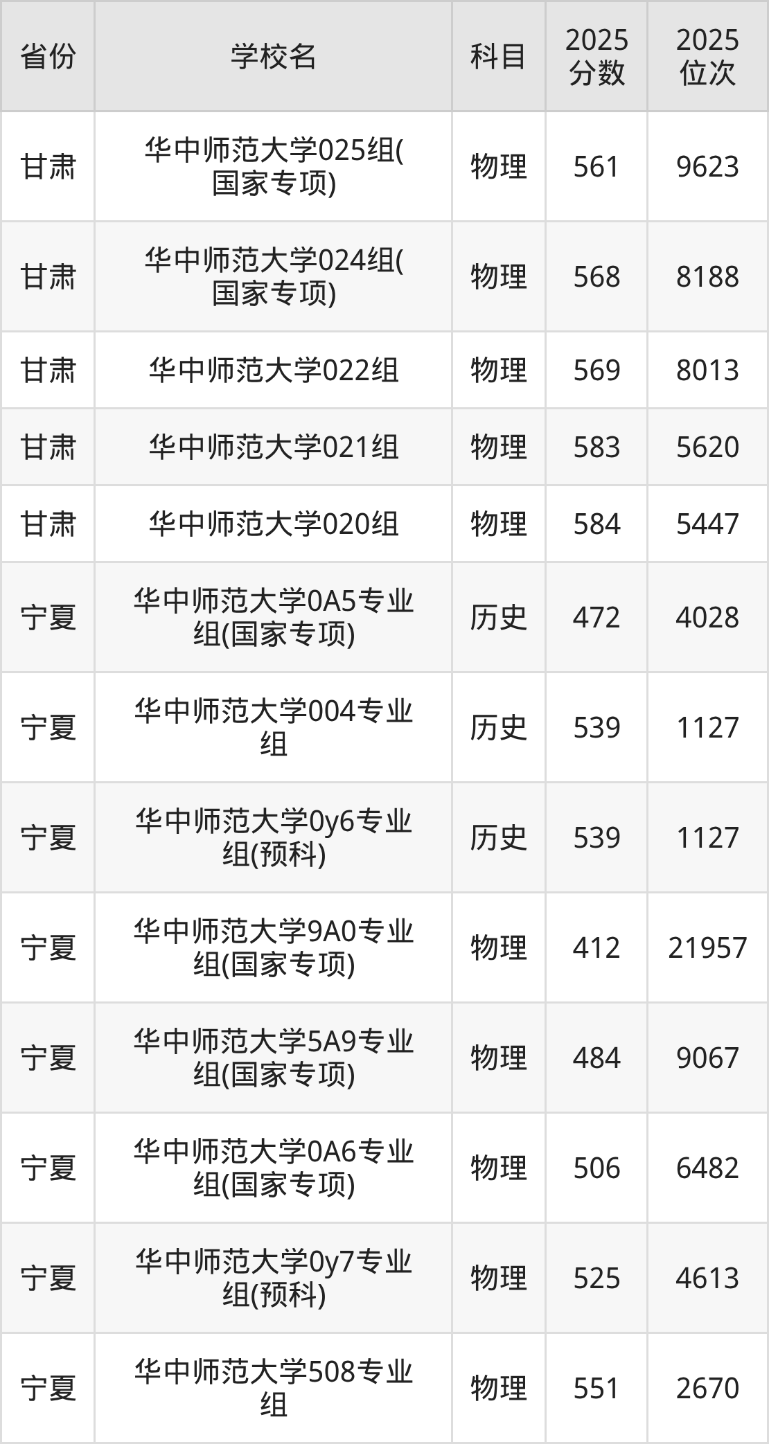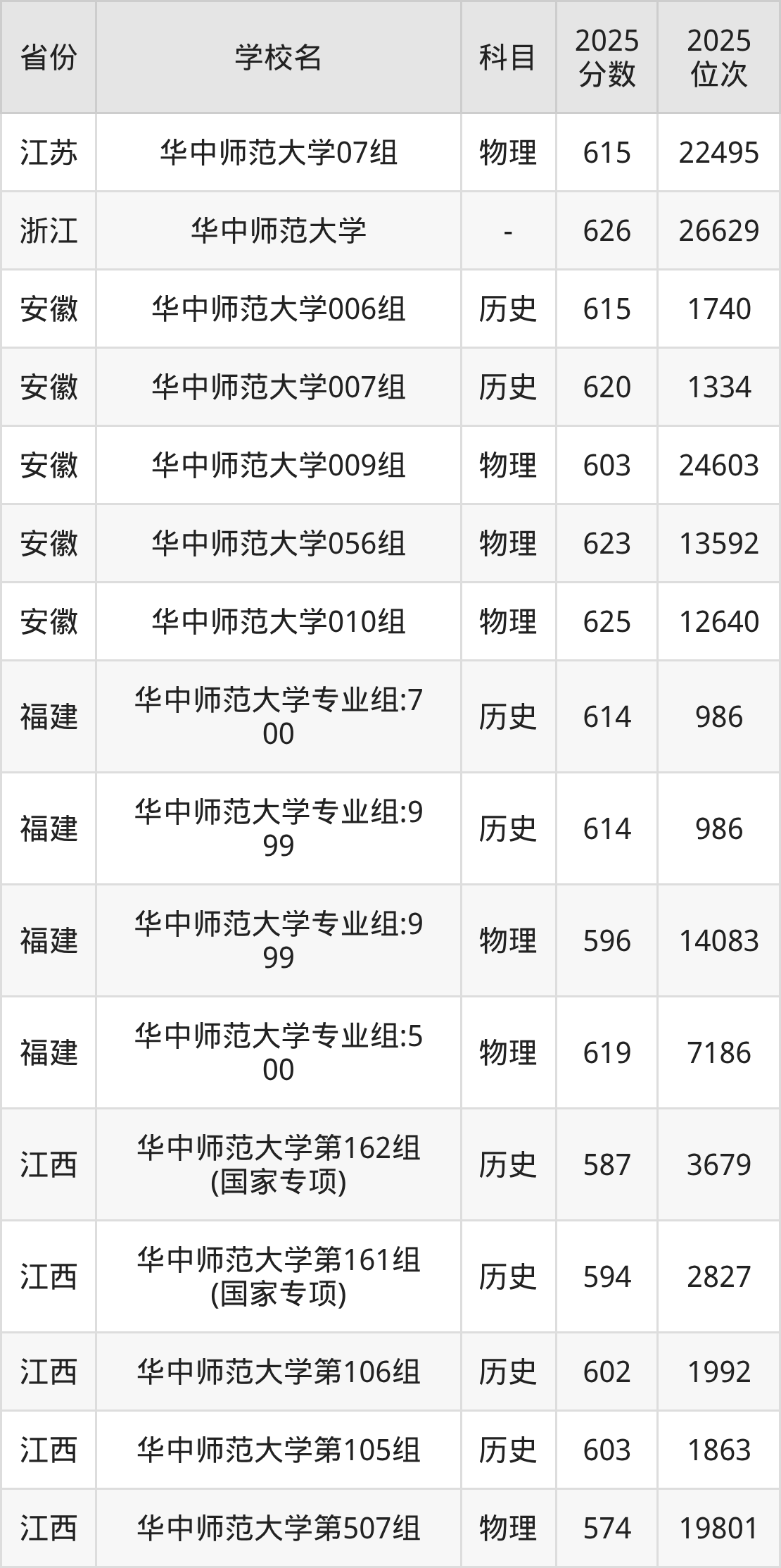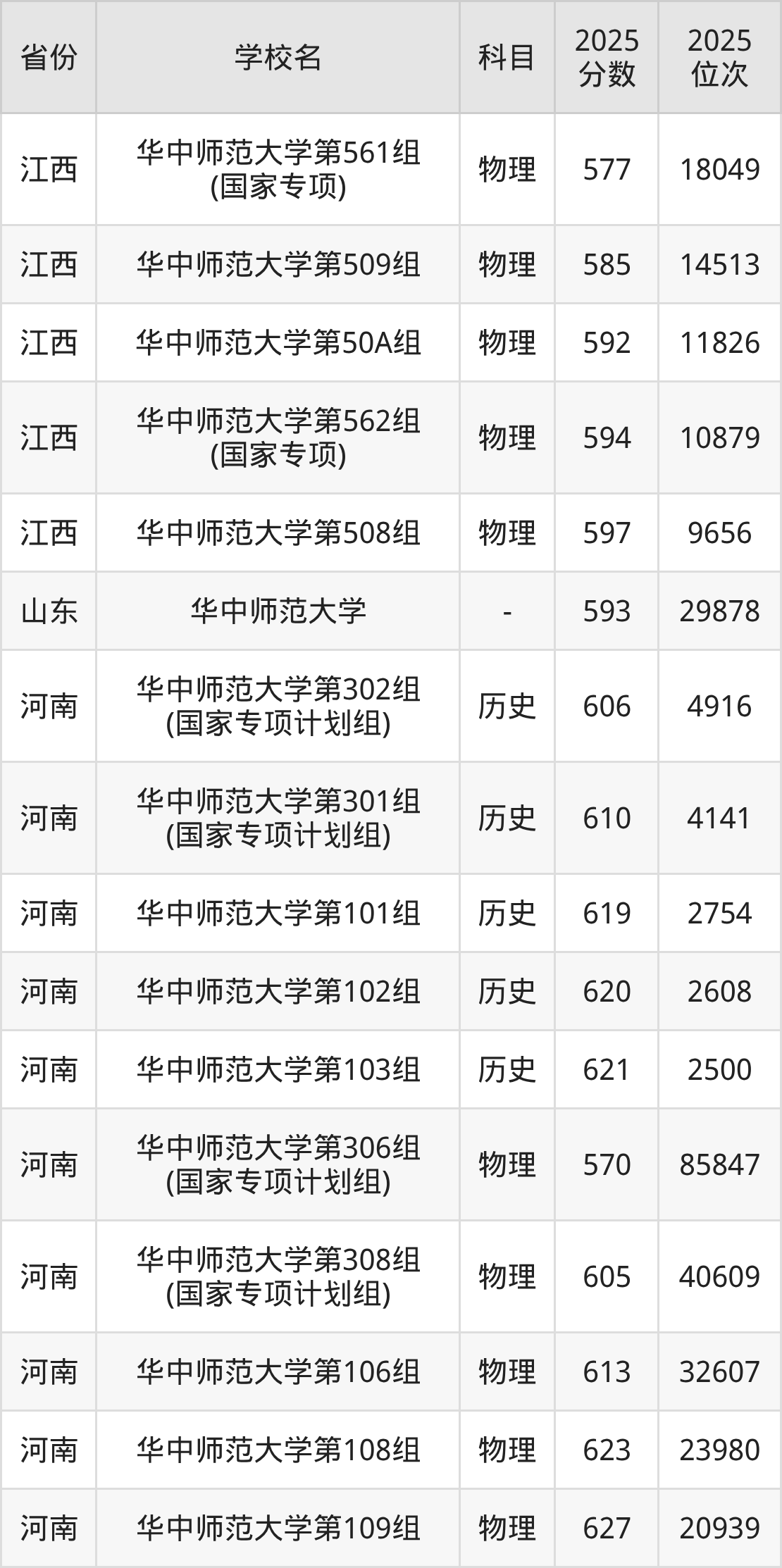 | 华中师范大学第 25组(国家专 项) | 物理 | 584 | 22070 |