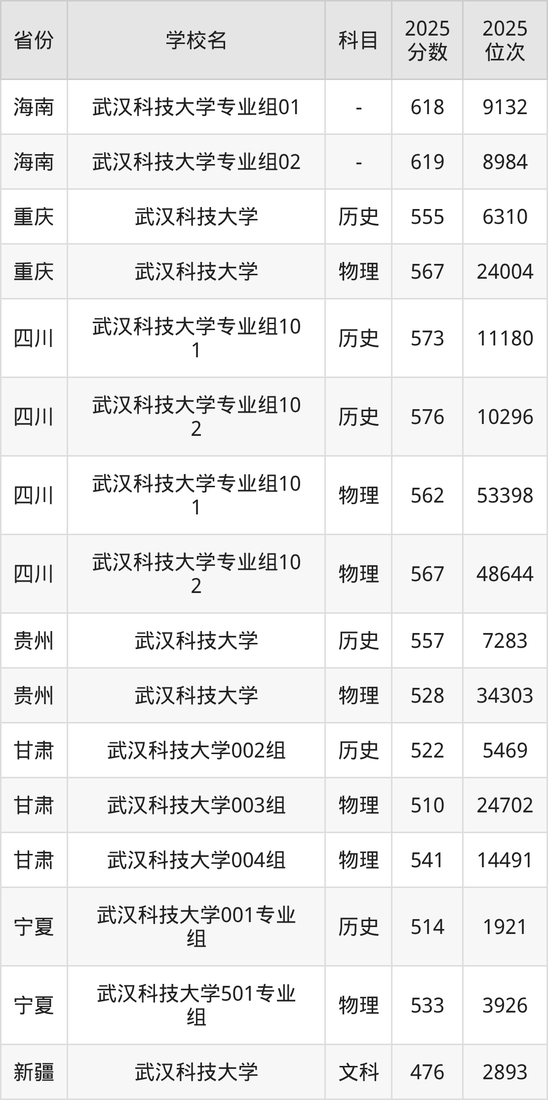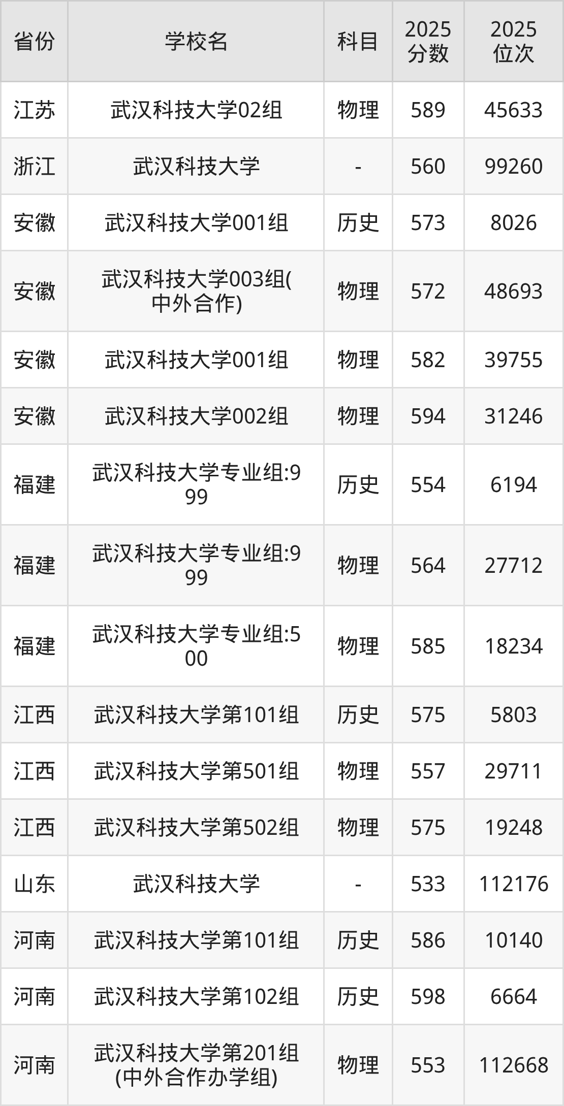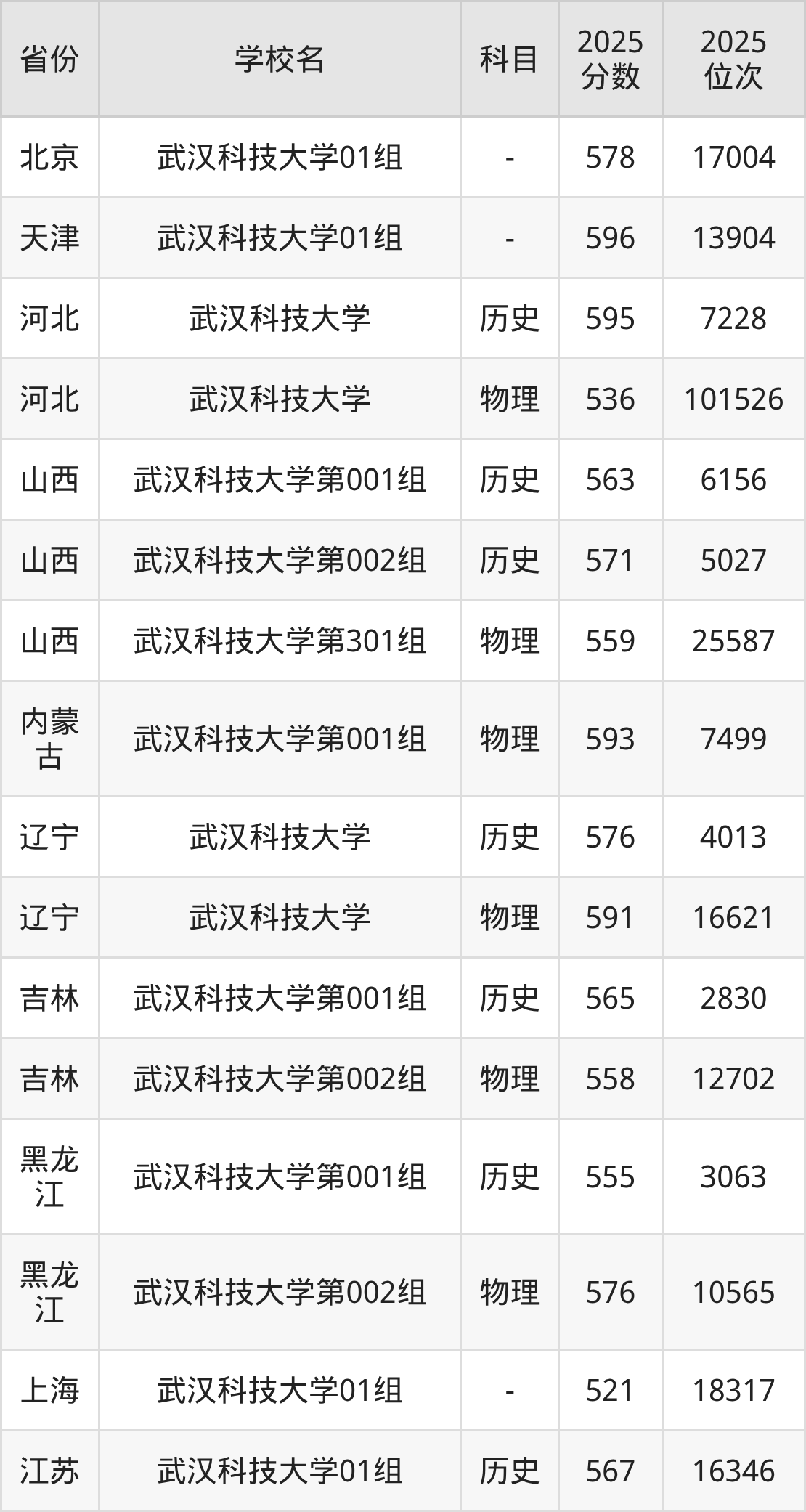 下面是武汉科技大学2025年录取分数线各省汇总,一起来了解下吧。