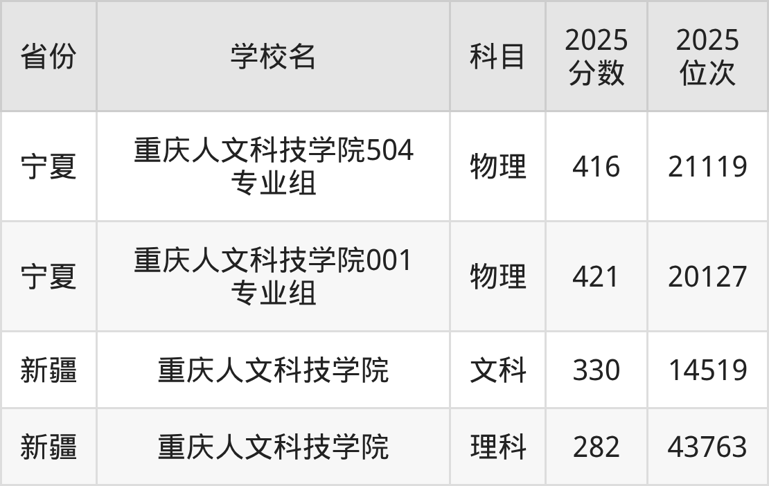 下面是重庆人文科技学院2025年录取分数线各省汇总,一起来了解下吧。