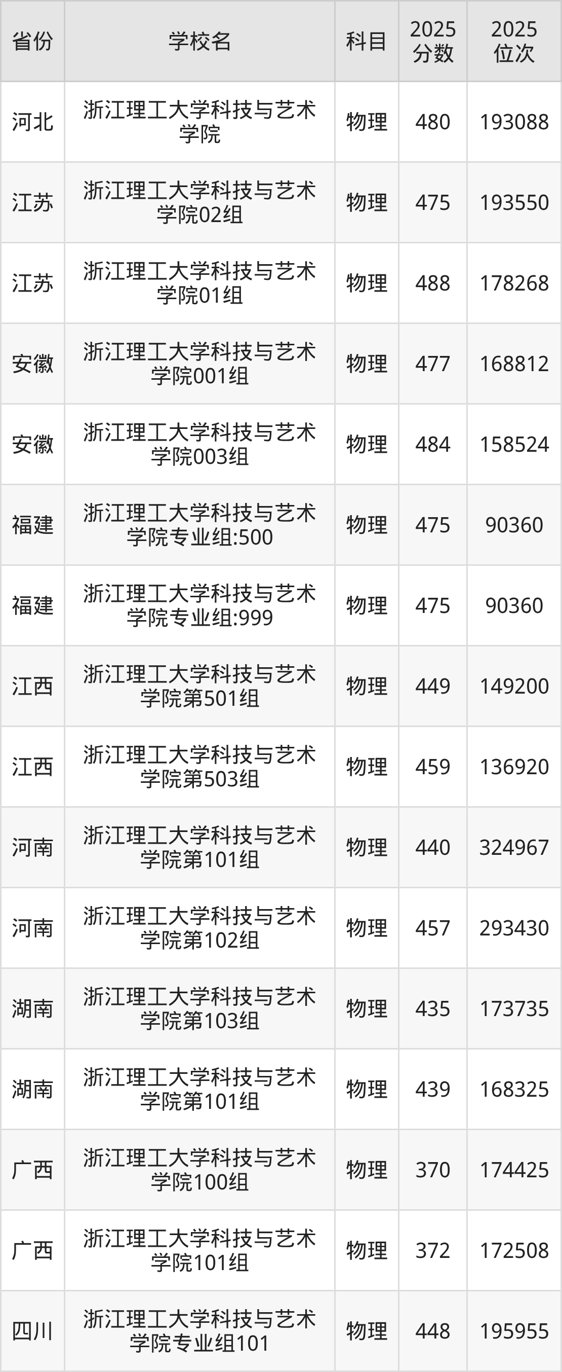 2025年浙江理工大学科技与艺术学院在省外录取分数线范围整体位于297分到488分之间,录取分数线最低在新疆理科、录取分数线最高在江苏物理(01组)。