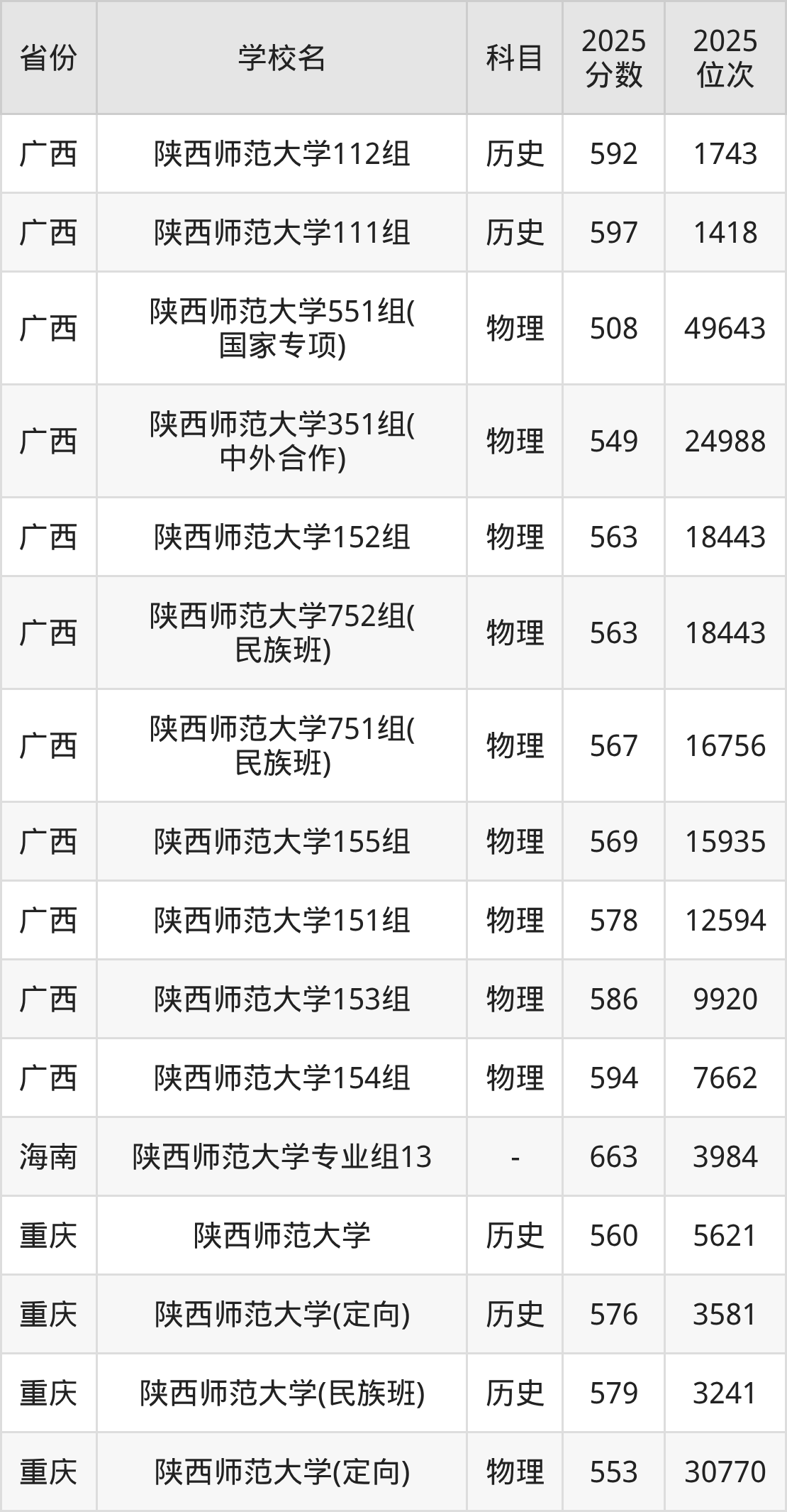 下面是陕西师范大学2025年录取分数线各省汇总,一起来了解下吧。