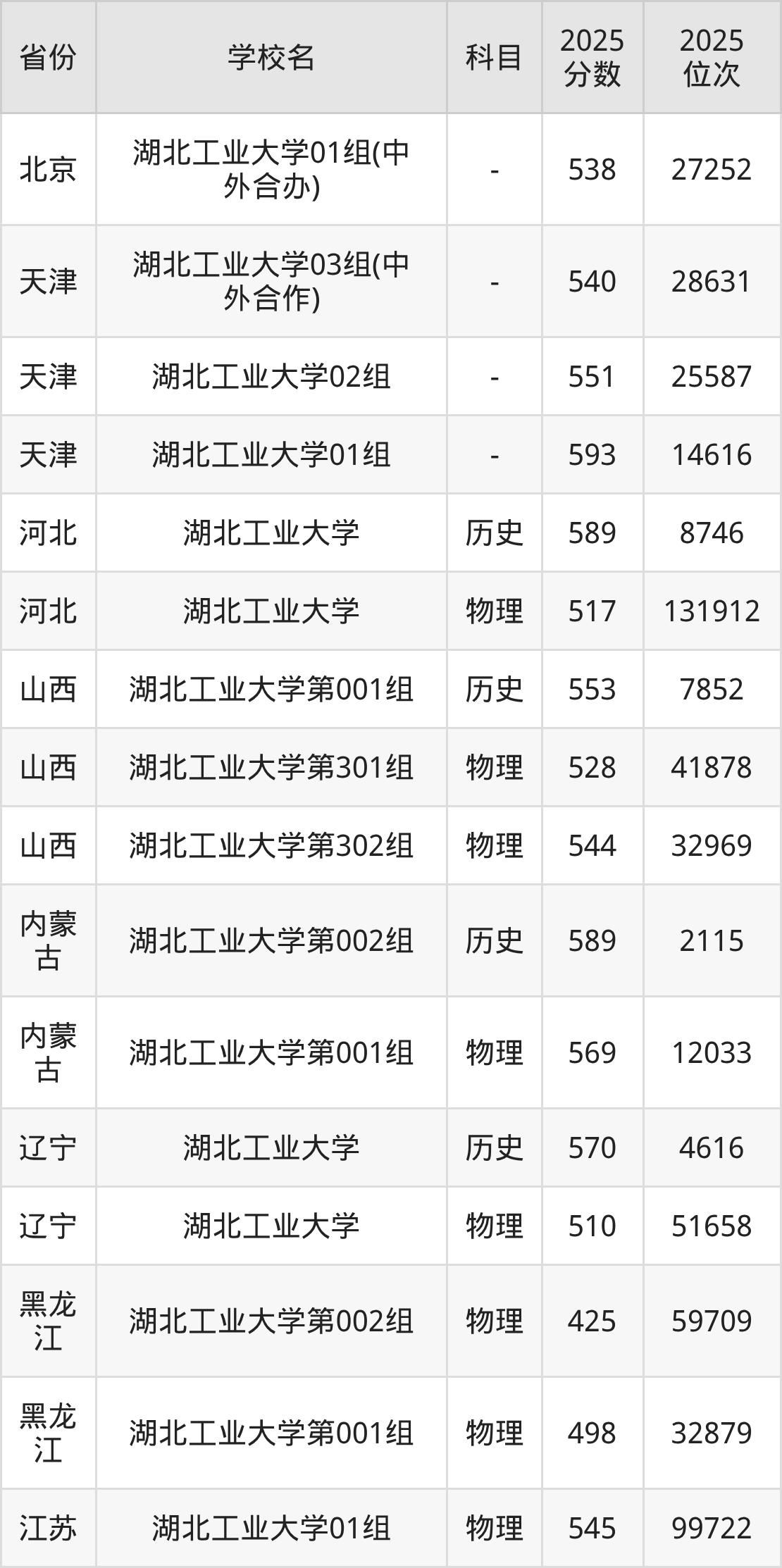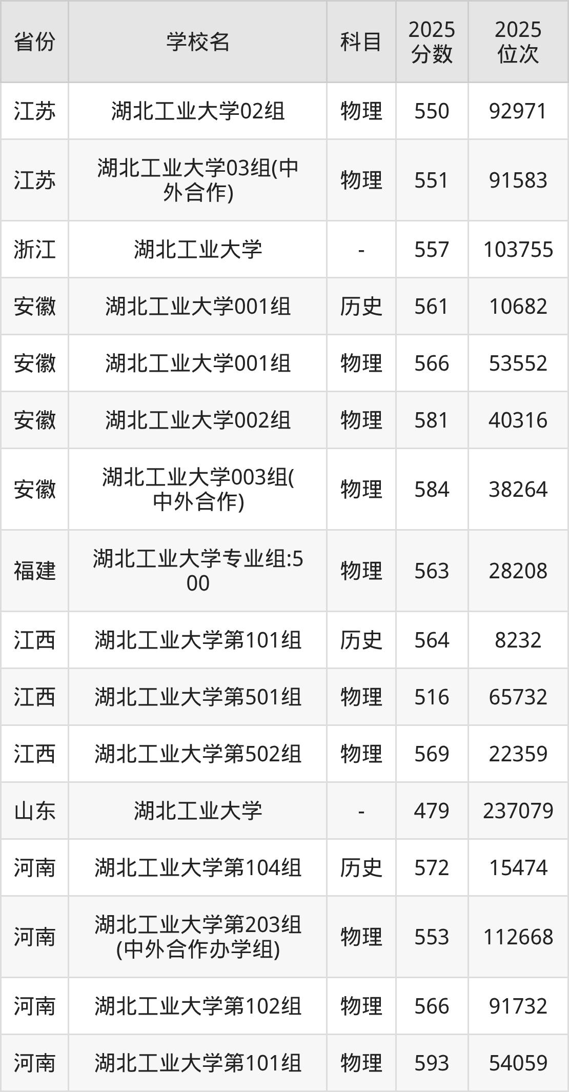 下面是湖北工业大学2025年录取分数线各省汇总,一起来了解下吧。
