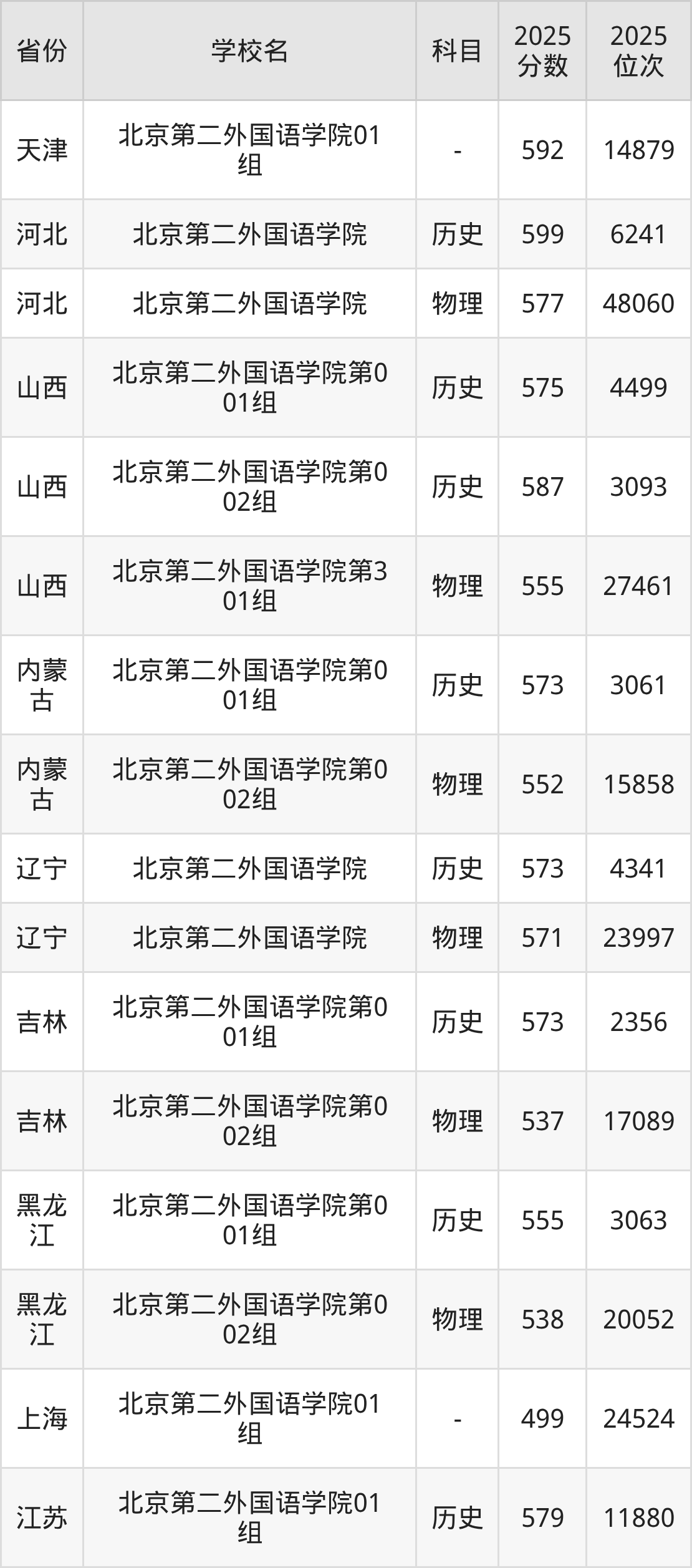 | 学校名 | 2025 分数 | 2025 位次 |