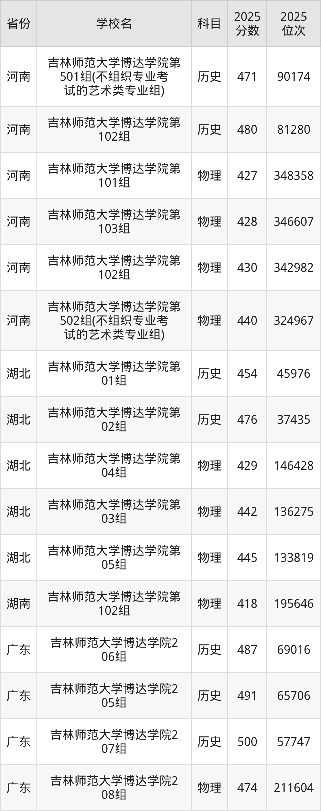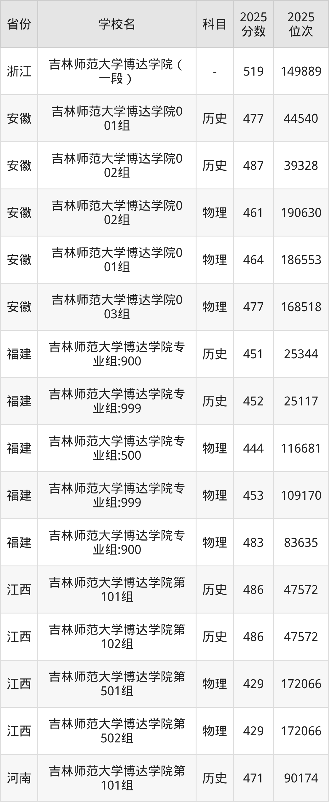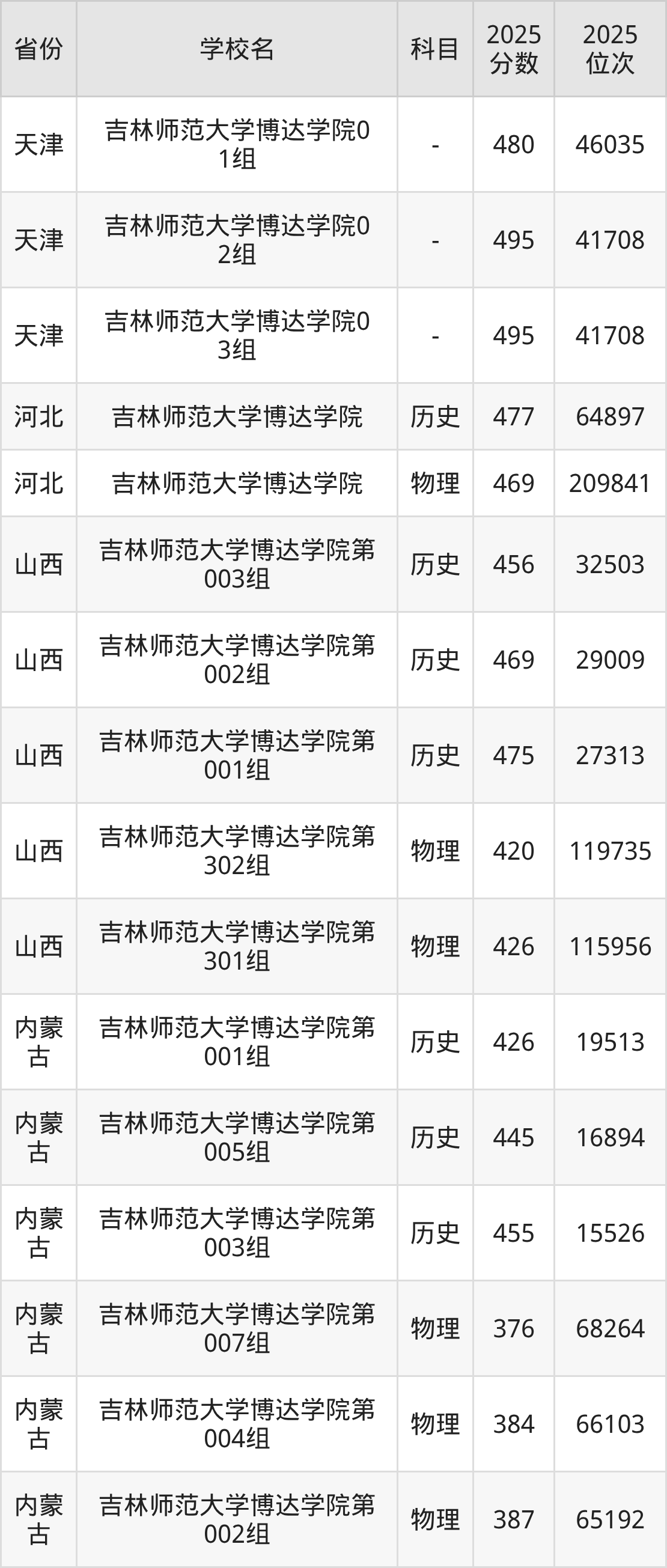 下面是吉林师范大学博达学院2025年录取分数线各省汇总,一起来了解下吧。
