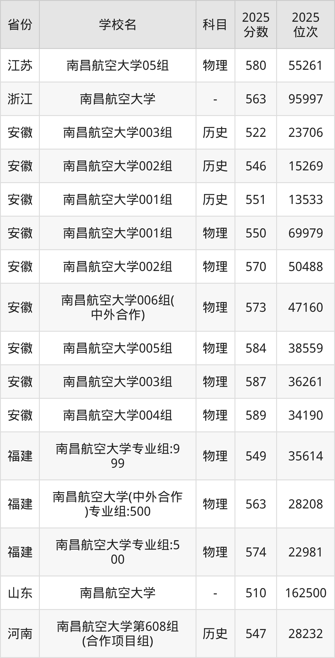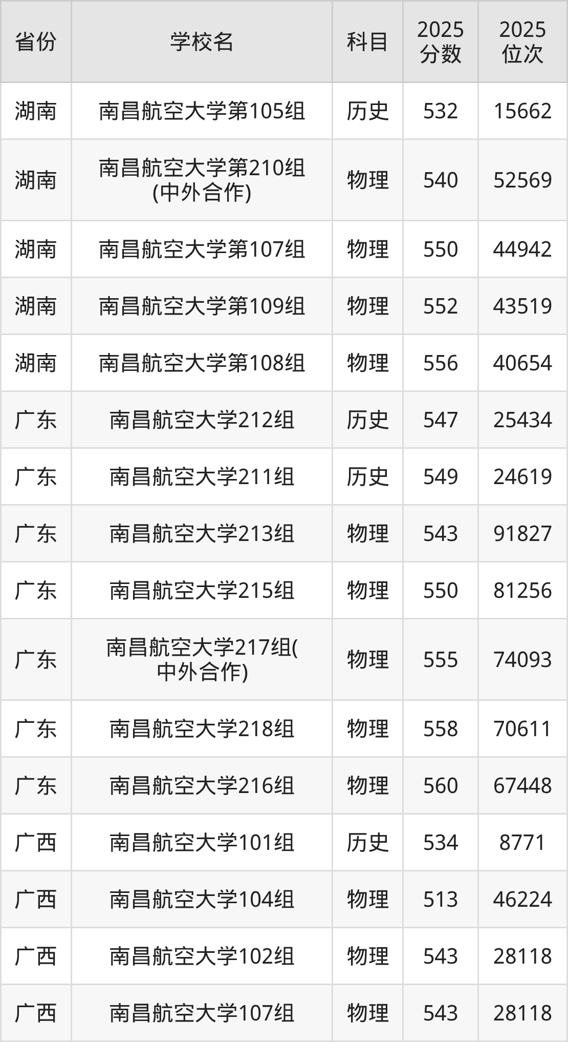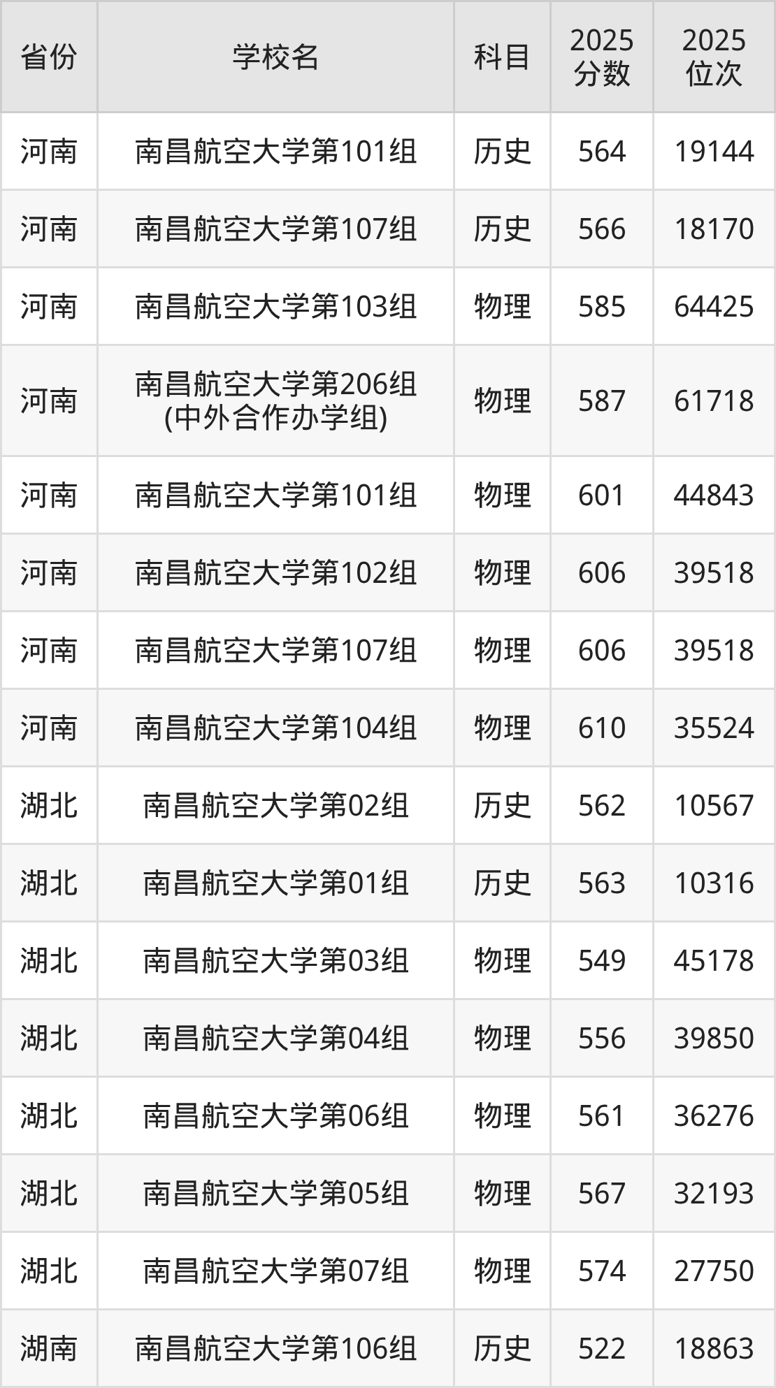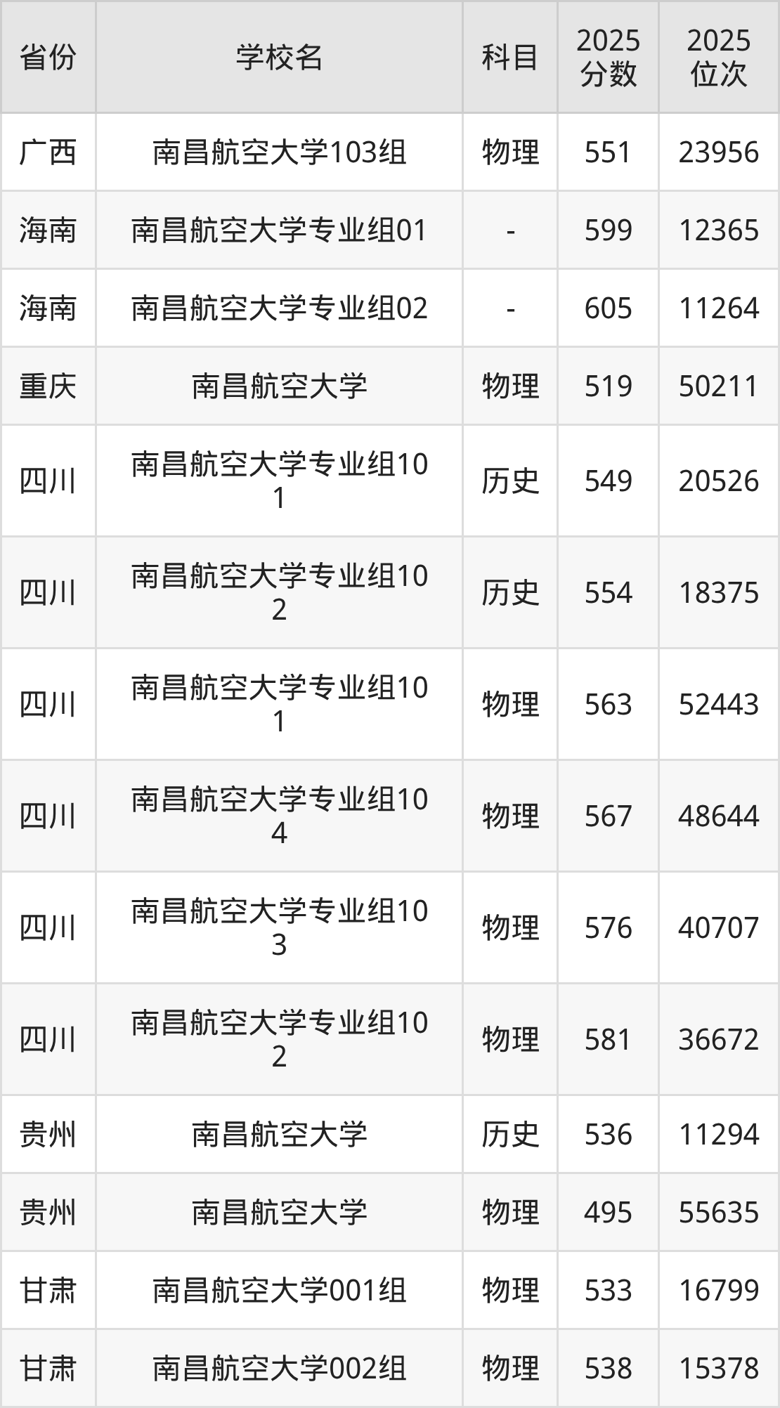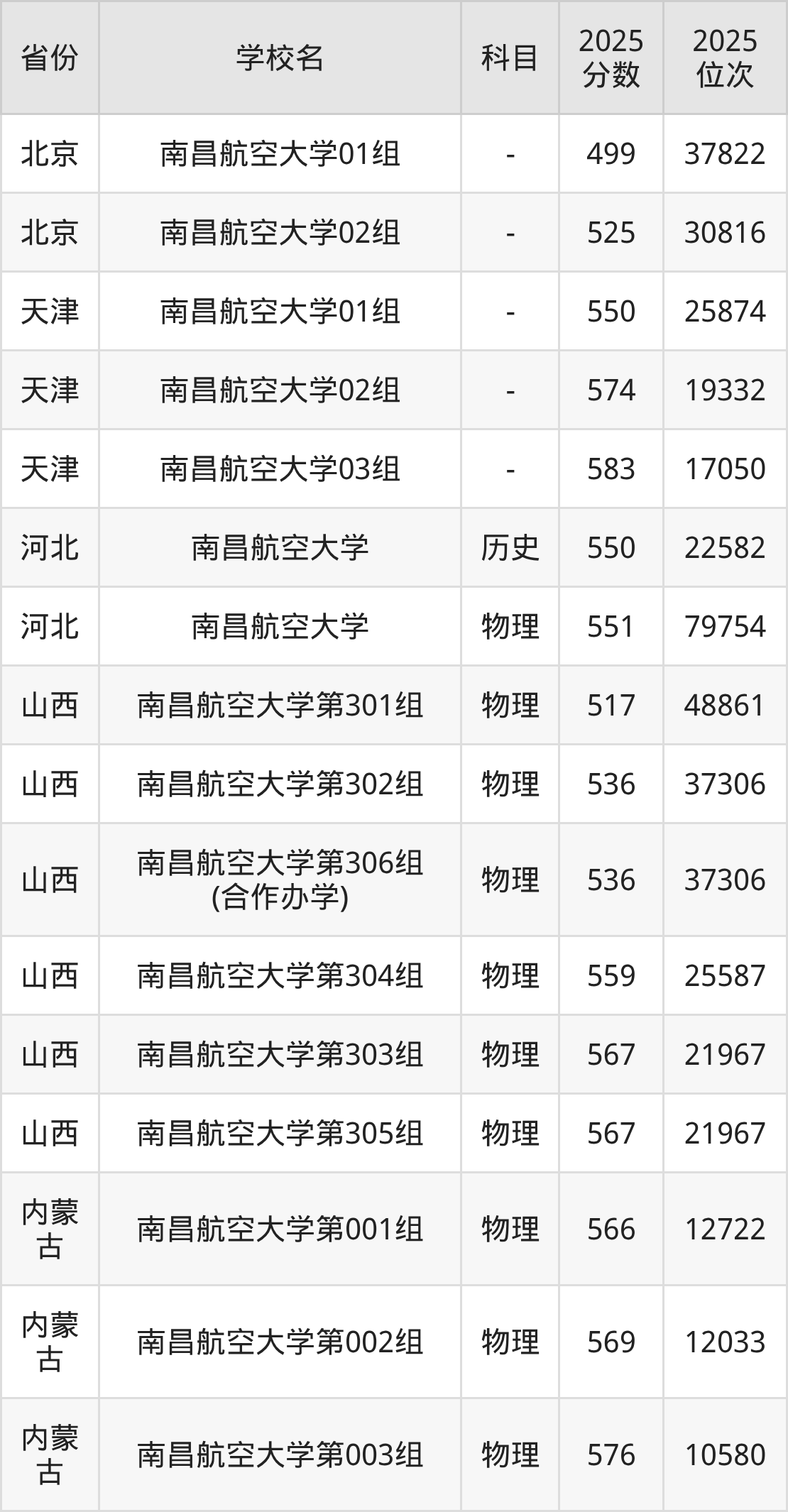 下面是南昌航空大学2025年录取分数线各省汇总,一起来了解下吧。