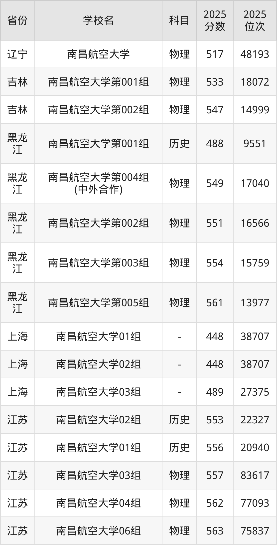 2025年南昌航空大学历史类最低分542分(15452名)、物理类最低分507分(75775名)。