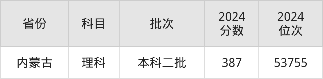 理科最低分对应地区为内蒙古,录取位次为53755,超27分。