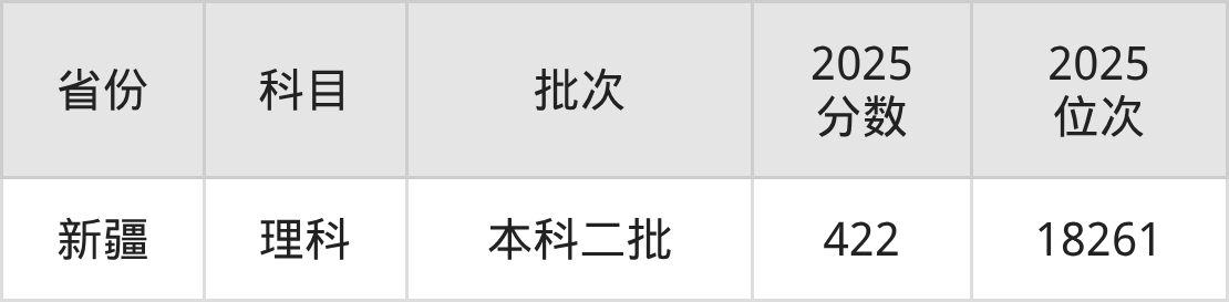理科最低分对应地区为新疆,录取位次为18261,超二本线142分。