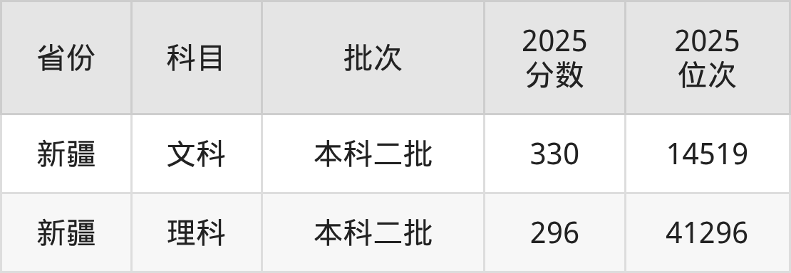理科最低分对应地区为新疆,录取位次为41296,超二本线16分。