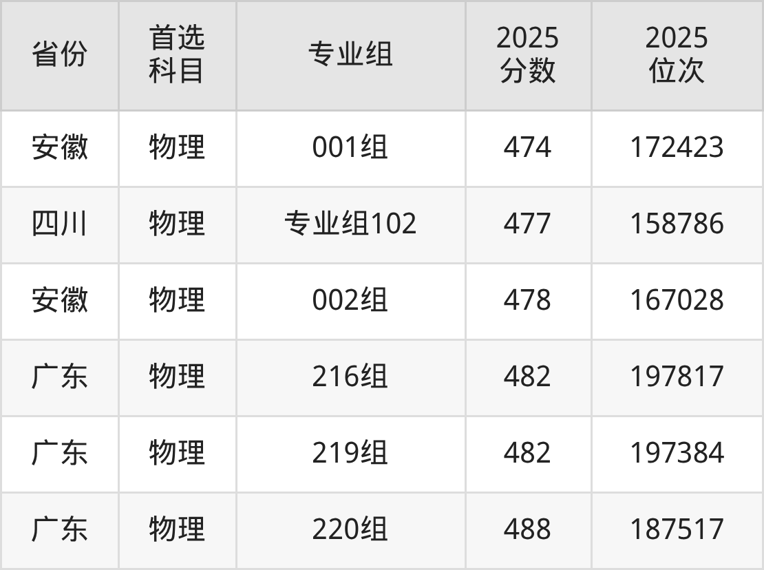 物理类:第008组390分、58141名,第009组363分、64880名,第010组(中外合作)343分、68853名,第011组(地方专项)395分、56799名,第012组401分、55149名;