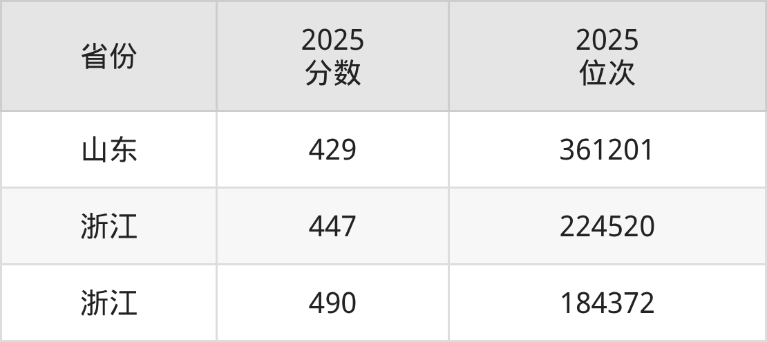 最低分对应地区为山东,录取位次为361201,超二段线279分;最高分对应地区为浙江,录取位次为184372。