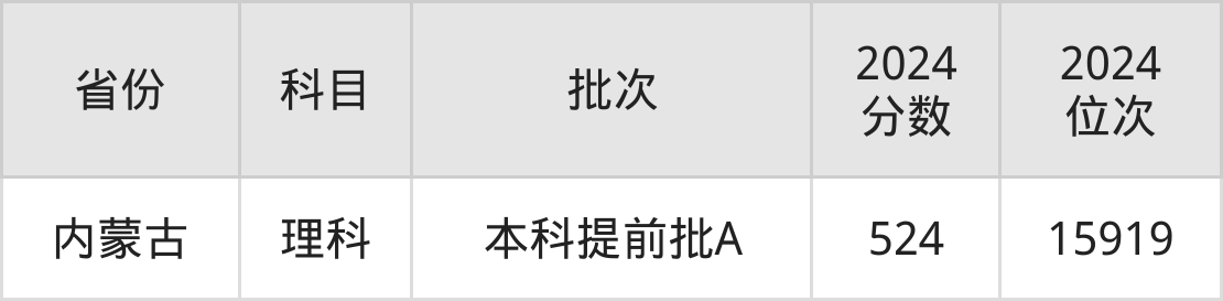 理科最低分对应地区为内蒙古,录取位次为15919,超一本线53分。