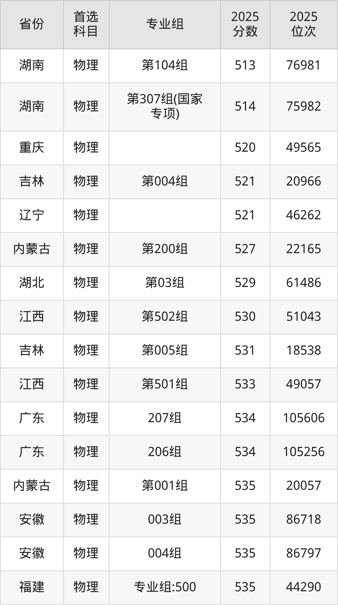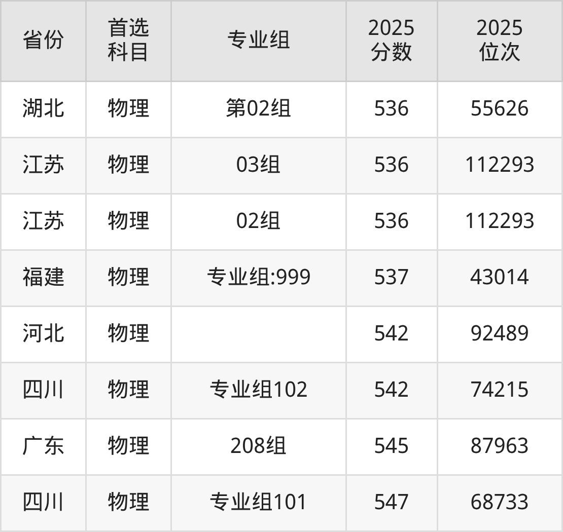 物理类最低分对应地区为宁夏(502专业组),录取位次为12834,超本科B87分;最高分对应地区为四川(专业组101),录取位次为68733,超本科B109分。