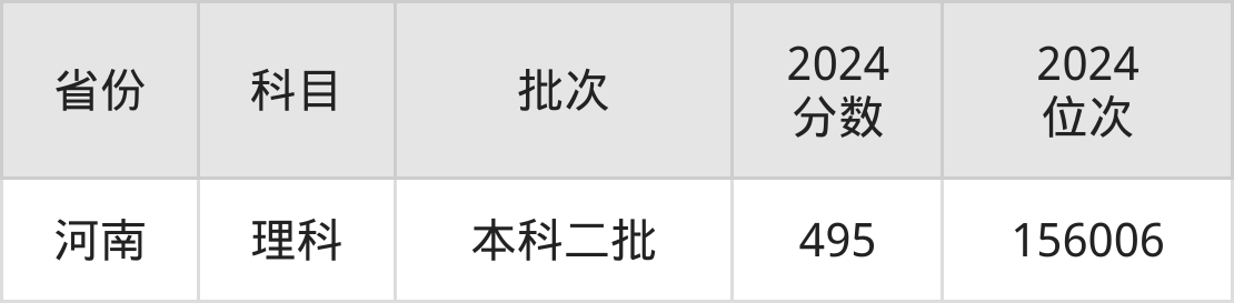 理科最低分对应地区为河南,录取位次为156006,超二本线99分。