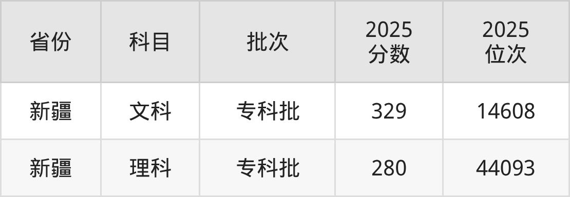 文科最低分对应地区为新疆,录取位次为14608,超专科线189分。