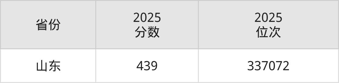 最低分对应地区为山东,录取位次为337072,超二段线289分。