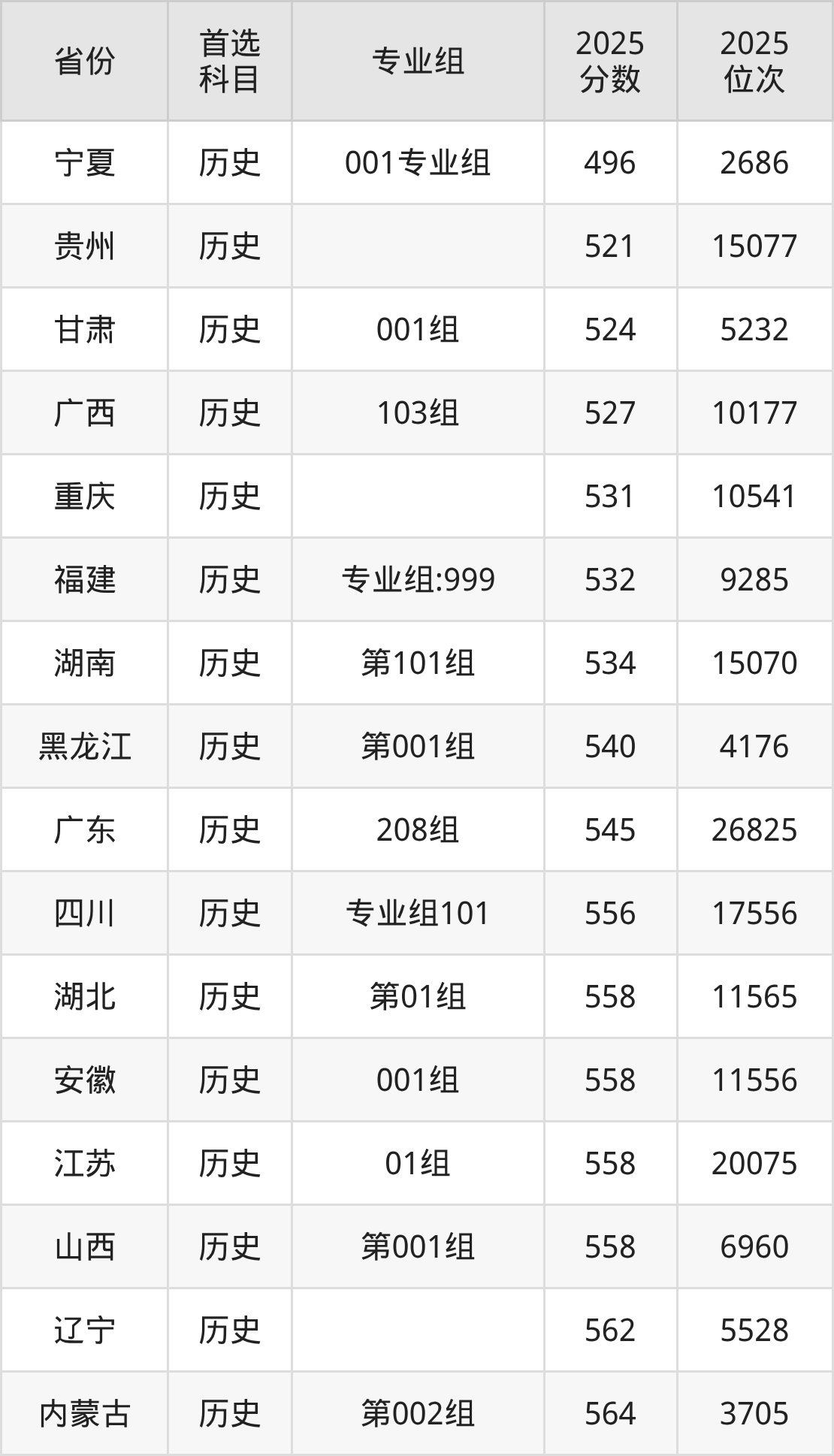 历史类:01组558分、20075名;