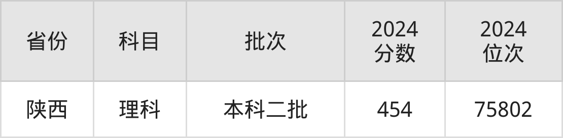 理科最低分对应地区为陕西,录取位次为75802,超二本线82分。