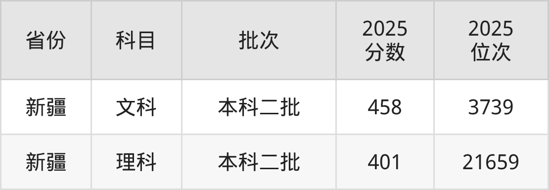文科最低分对应地区为新疆,录取位次为3739,超二本线128分。
