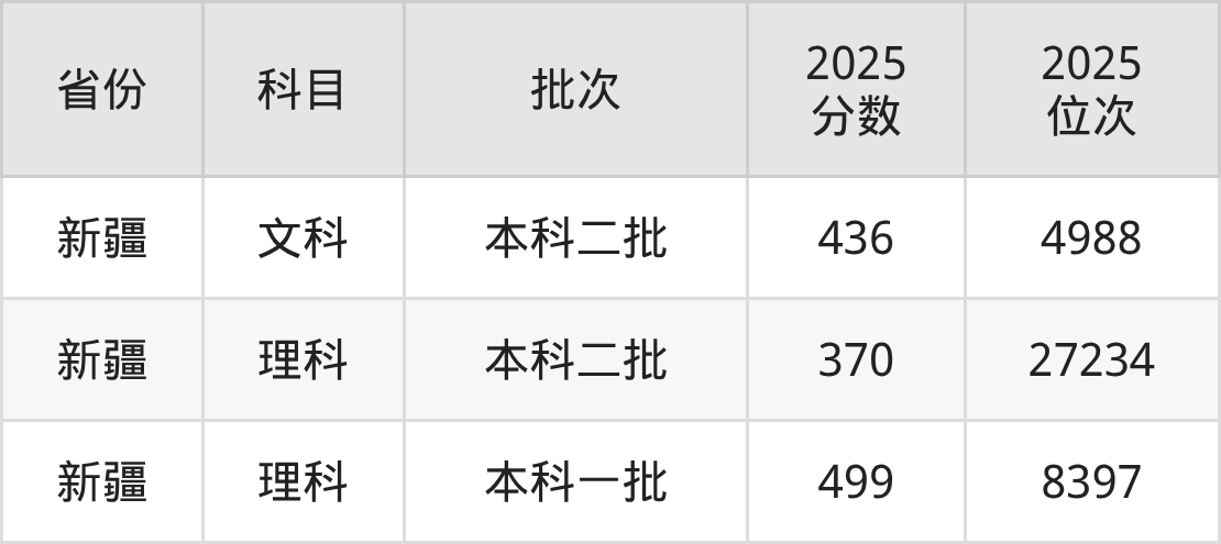 理科最低分对应地区为新疆,录取位次为27234;最高分对应地区为新疆,录取位次为8397,超一本线78分。