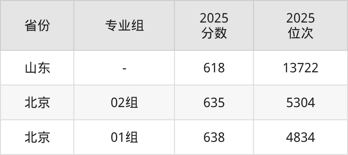 最低分对应地区为山东,录取位次为13722,超一段线184分;最高分对应地区为北京(01组),录取位次为4834,超本科线208分。