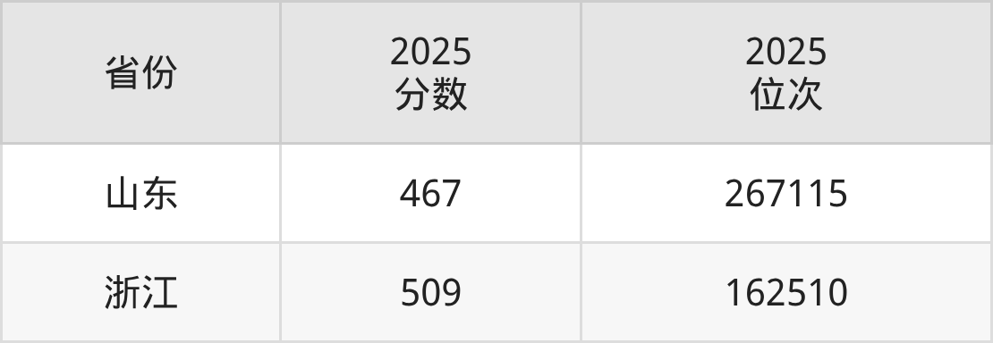 最低分对应地区为山东,录取位次为267115,超一段线71分;最高分对应地区为浙江,录取位次为162510,超一段线19分。