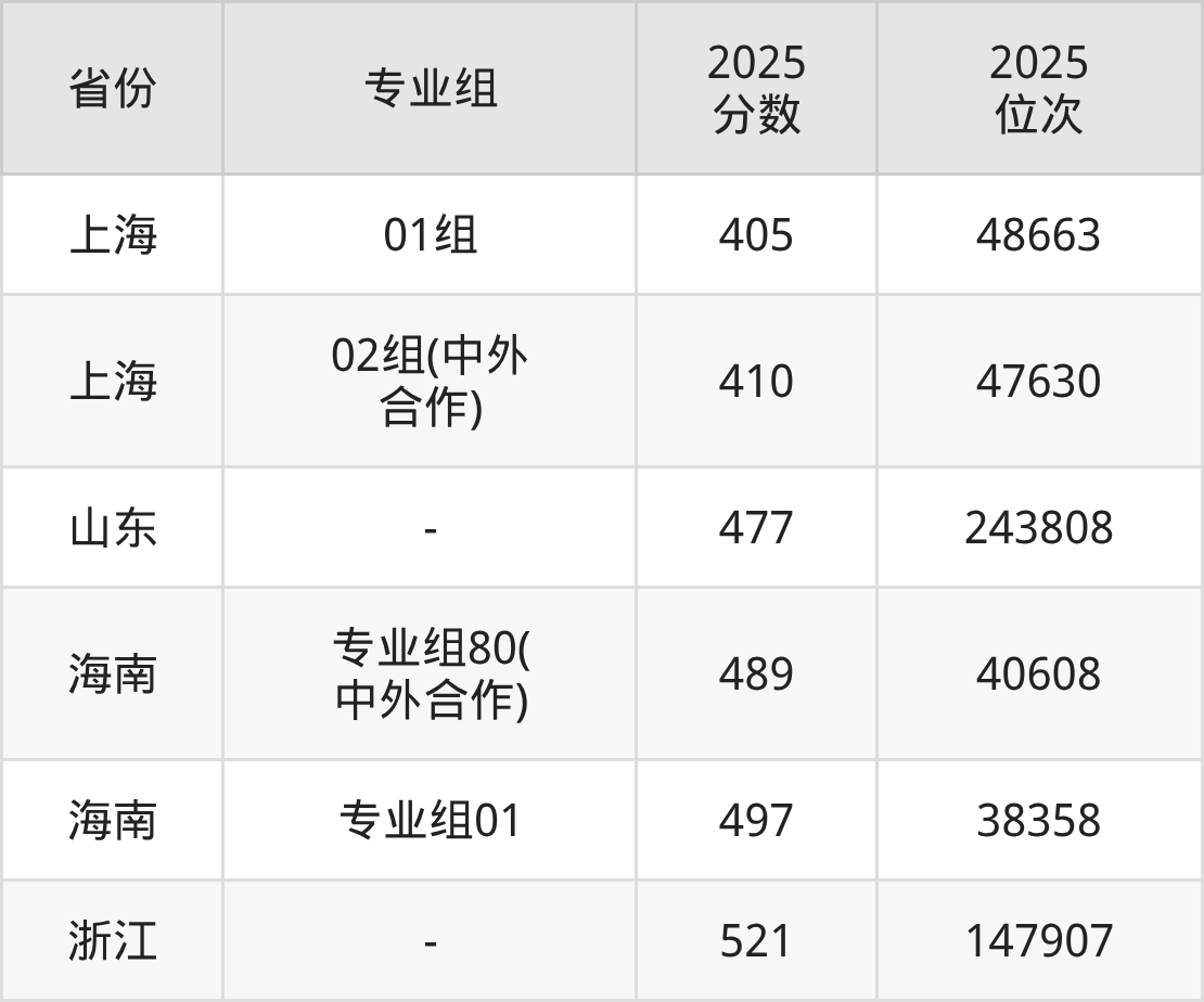 最低分对应地区为上海(01组),录取位次为48663,超本科线3分;最高分对应地区为浙江,录取位次为147907,超一段线31分。