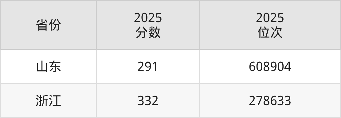最低分对应地区为山东,录取位次为608904,超二段线141分;最高分对应地区为浙江,录取位次为278633,超二段线64分。