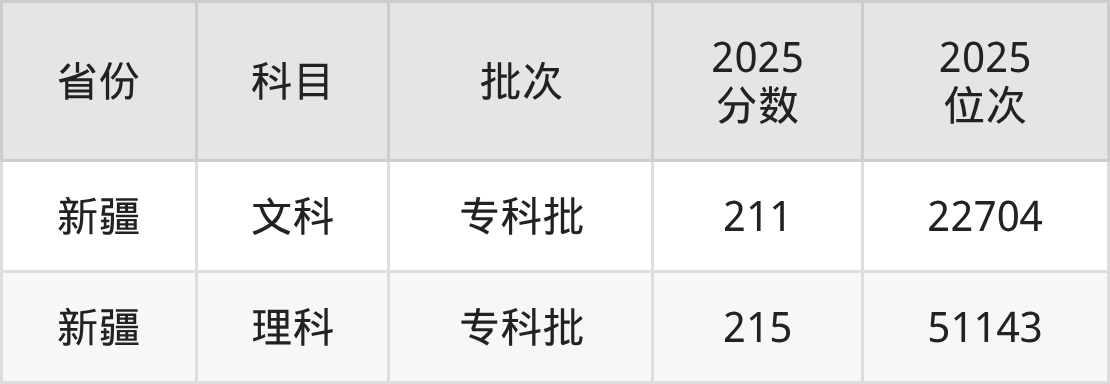 理科最低分对应地区为新疆,录取位次为51143,超专科线75分。