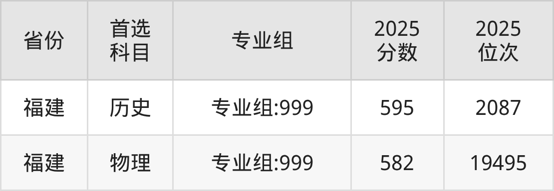 历史类最低分对应地区为福建(专业组:999),录取位次为2087,超本科线145分。
