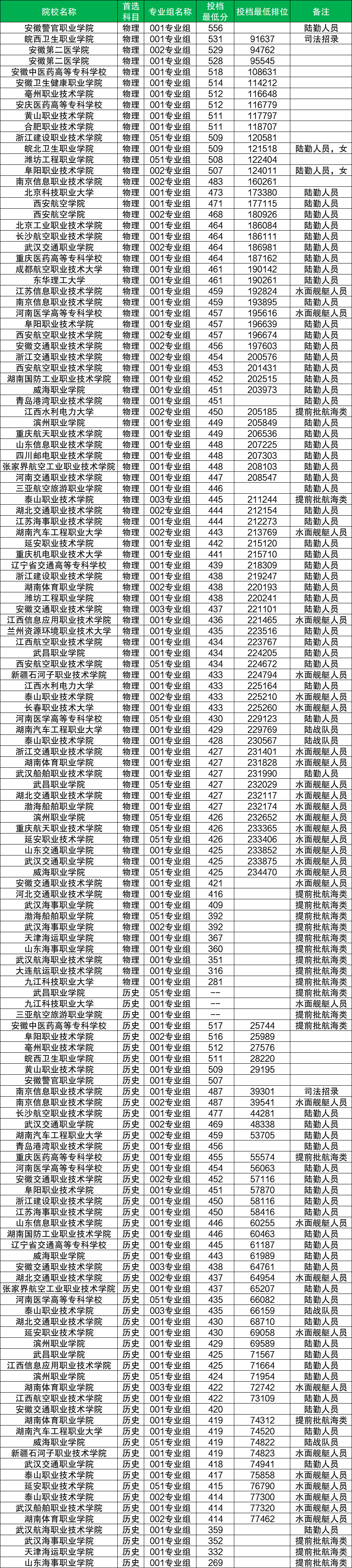 物理类:最低分199分(武昌职业学院),最高分534分(浙江警官职业学院)